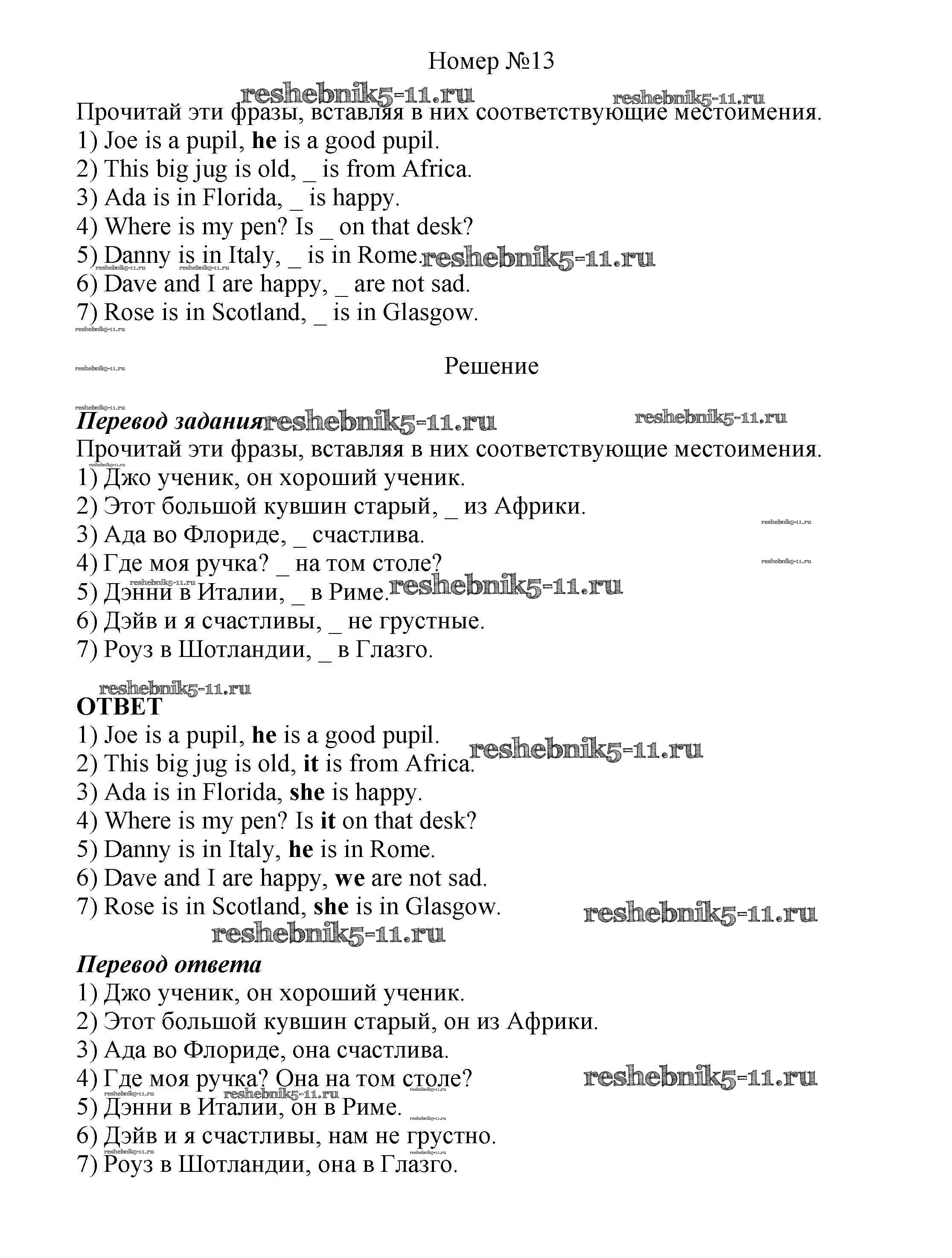 Готовая домашняя работа с ответами по Английскому языку за 5 класс Афанасьева, Михеева Рабочая тетрадь Новый курс Часть 1, 2 Дрофа 2017 ФГОС - Unit 4 13