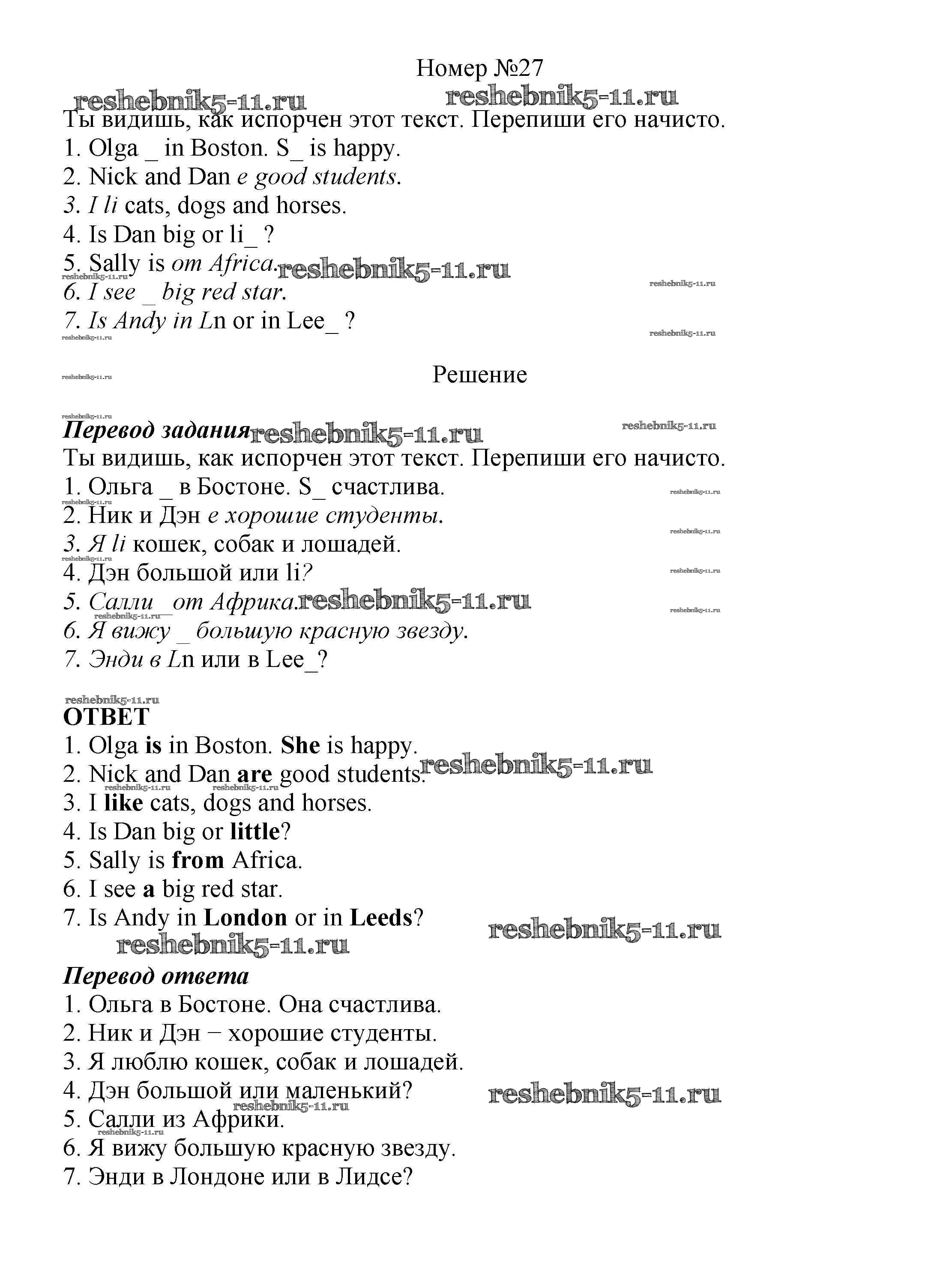 Готовая домашняя работа с ответами по Английскому языку за 5 класс Афанасьева, Михеева Рабочая тетрадь Новый курс Часть 1, 2 Дрофа 2017 ФГОС - Unit 4 27
