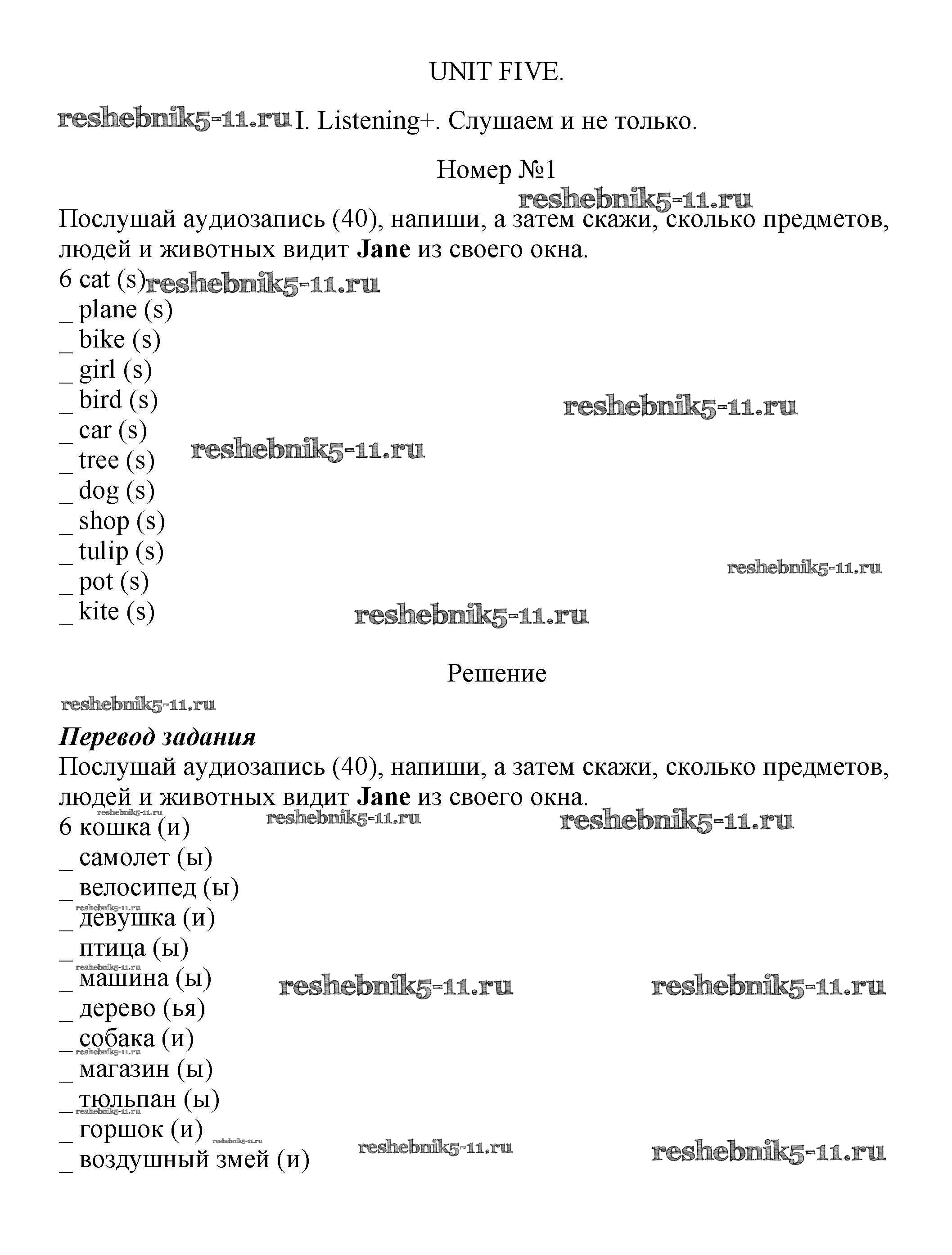 Готовая домашняя работа с ответами по Английскому языку за 5 класс Афанасьева, Михеева Рабочая тетрадь Новый курс Часть 1, 2 Дрофа 2017 ФГОС - Unit 5 1