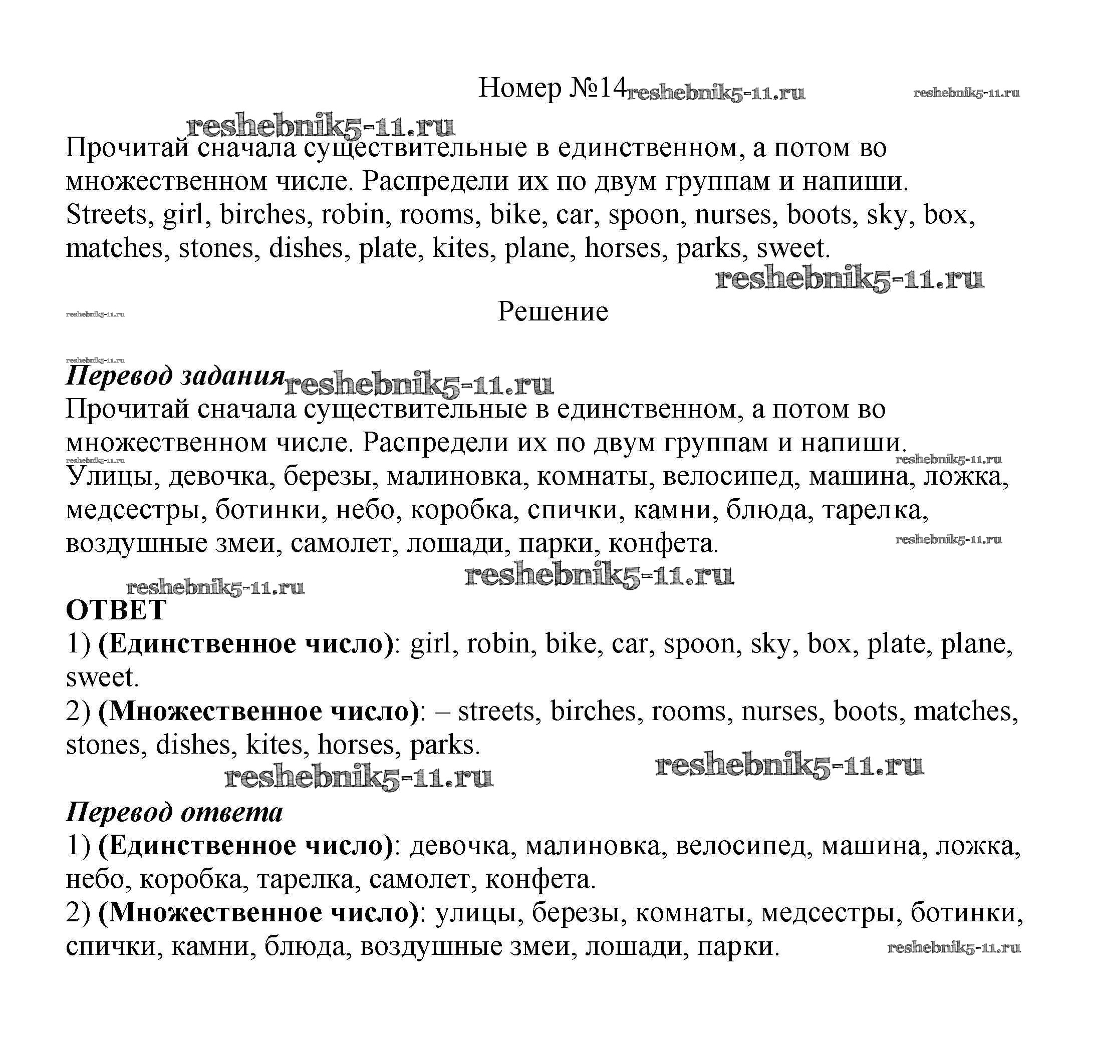 Готовая домашняя работа с ответами по Английскому языку за 5 класс Афанасьева, Михеева Рабочая тетрадь Новый курс Часть 1, 2 Дрофа 2017 ФГОС - Unit 5 14