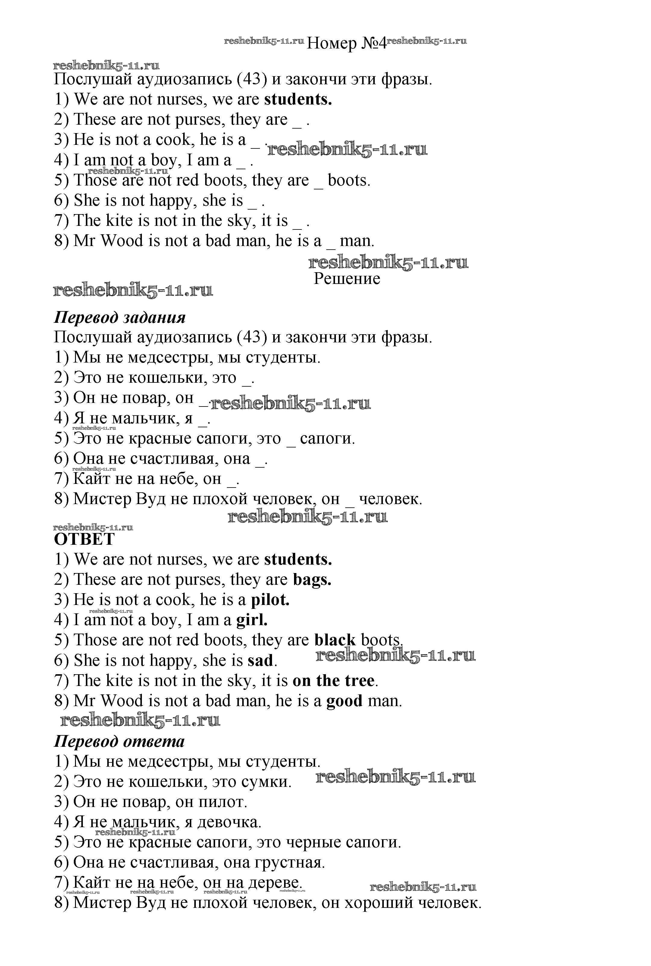 Готовая домашняя работа с ответами по Английскому языку за 5 класс Афанасьева, Михеева Рабочая тетрадь Новый курс Часть 1, 2 Дрофа 2017 ФГОС - Unit 5 4