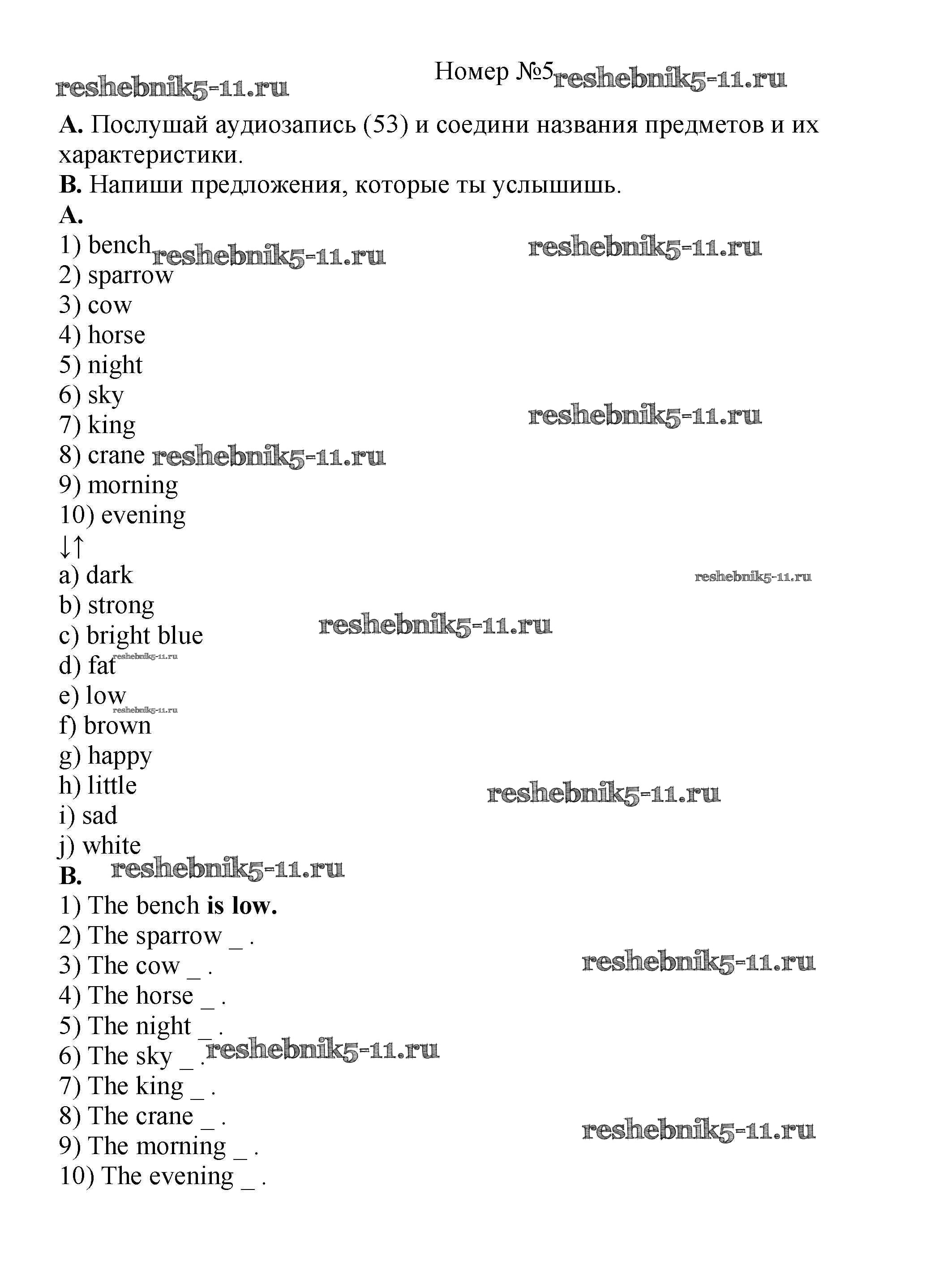Готовая домашняя работа с ответами по Английскому языку за 5 класс Афанасьева, Михеева Рабочая тетрадь Новый курс Часть 1, 2 Дрофа 2017 ФГОС - Unit 6 5