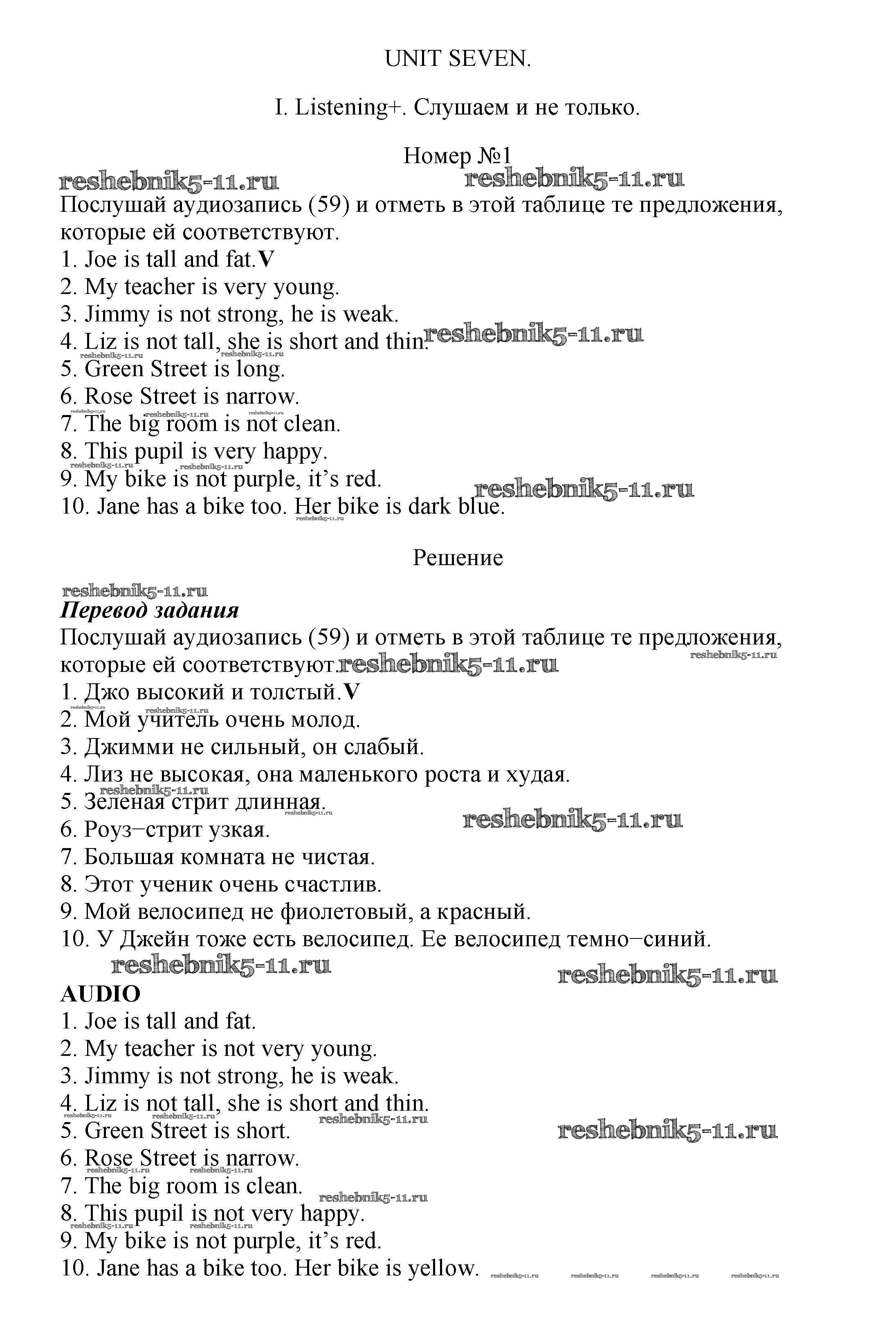 Готовая домашняя работа с ответами по Английскому языку за 5 класс Афанасьева, Михеева Рабочая тетрадь Новый курс Часть 1, 2 Дрофа 2017 ФГОС - Unit 7 1