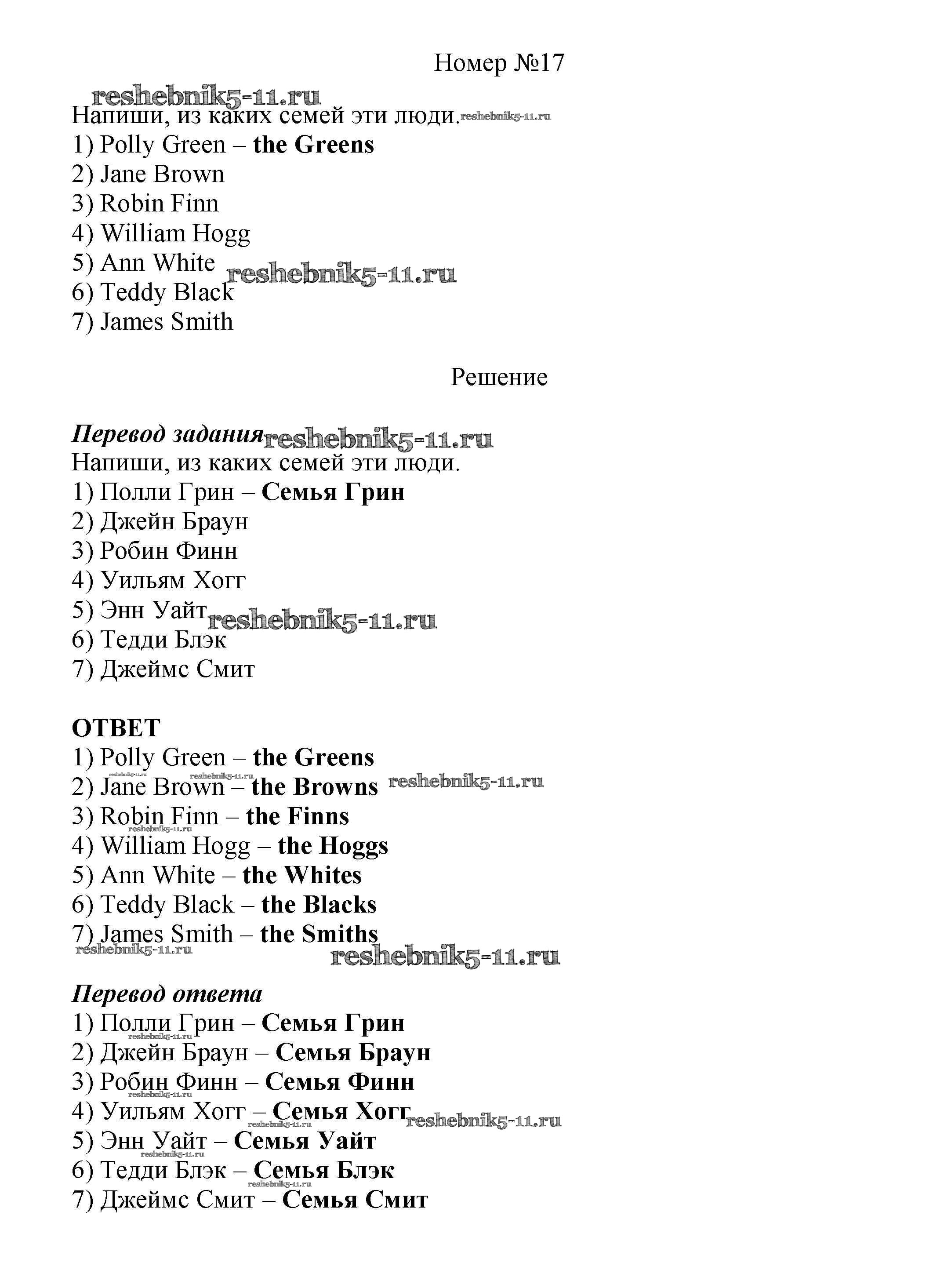 Готовая домашняя работа с ответами по Английскому языку за 5 класс Афанасьева, Михеева Рабочая тетрадь Новый курс Часть 1, 2 Дрофа 2017 ФГОС - Unit 7 17