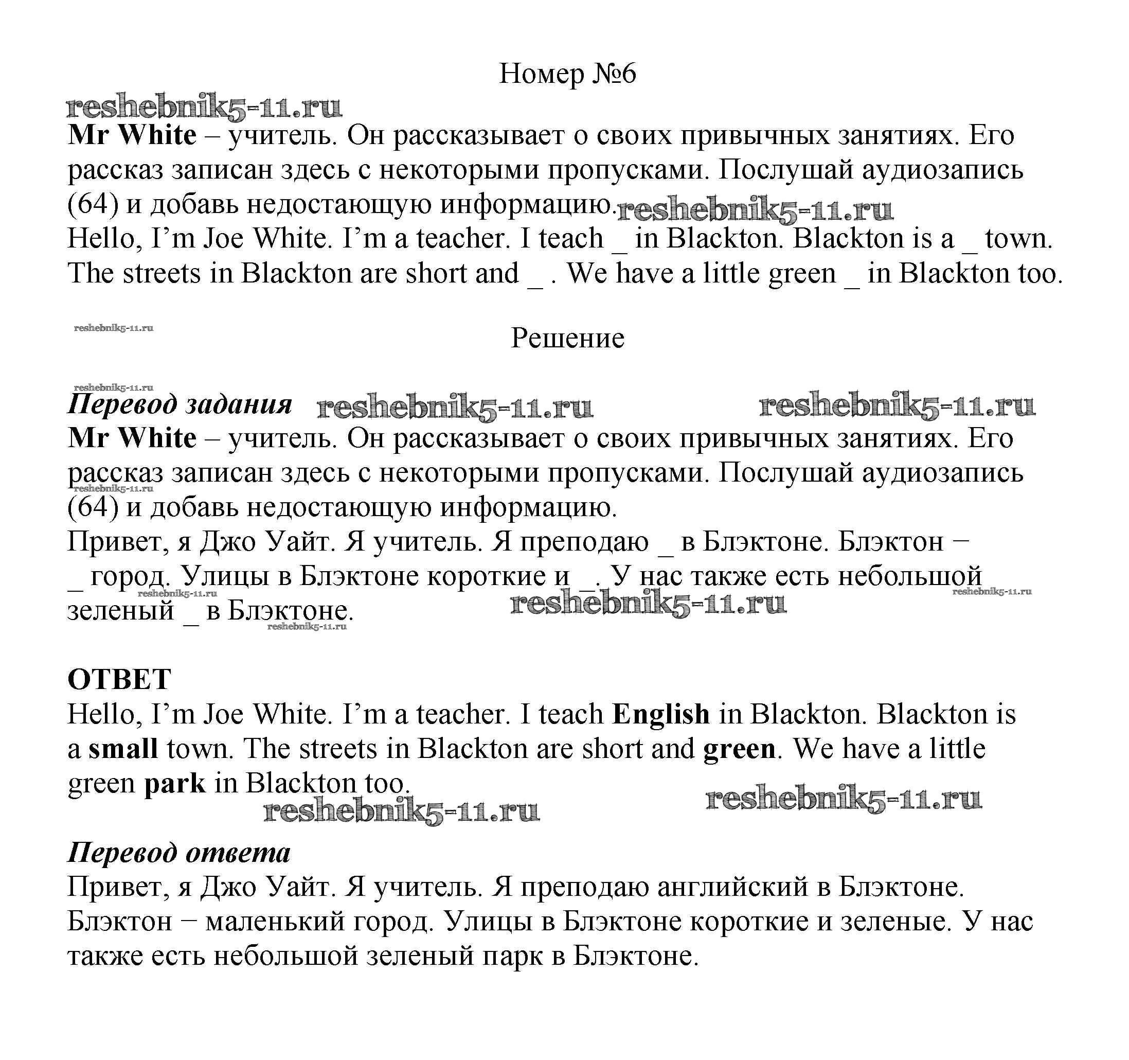 Готовая домашняя работа с ответами по Английскому языку за 5 класс Афанасьева, Михеева Рабочая тетрадь Новый курс Часть 1, 2 Дрофа 2017 ФГОС - Unit 7 6