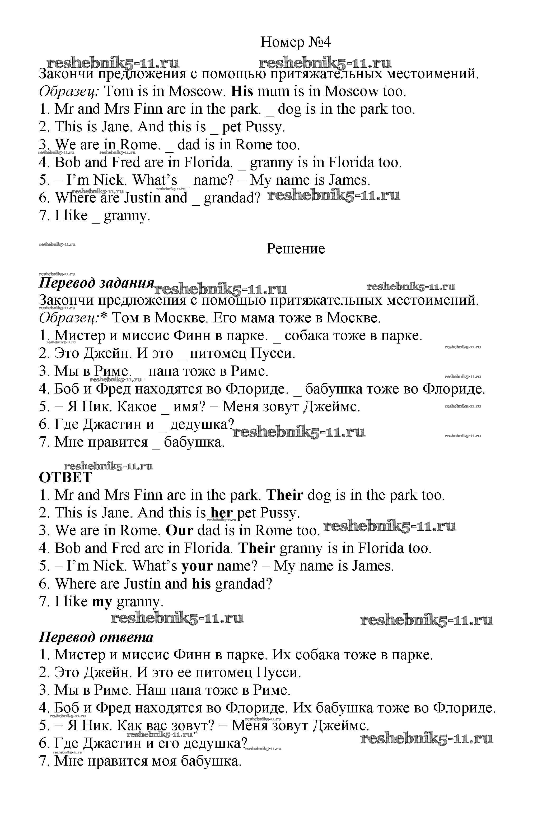 Готовая домашняя работа с ответами по Английскому языку за 5 класс Афанасьева, Михеева Рабочая тетрадь Новый курс Часть 1, 2 Дрофа 2017 ФГОС - Unit 5 4