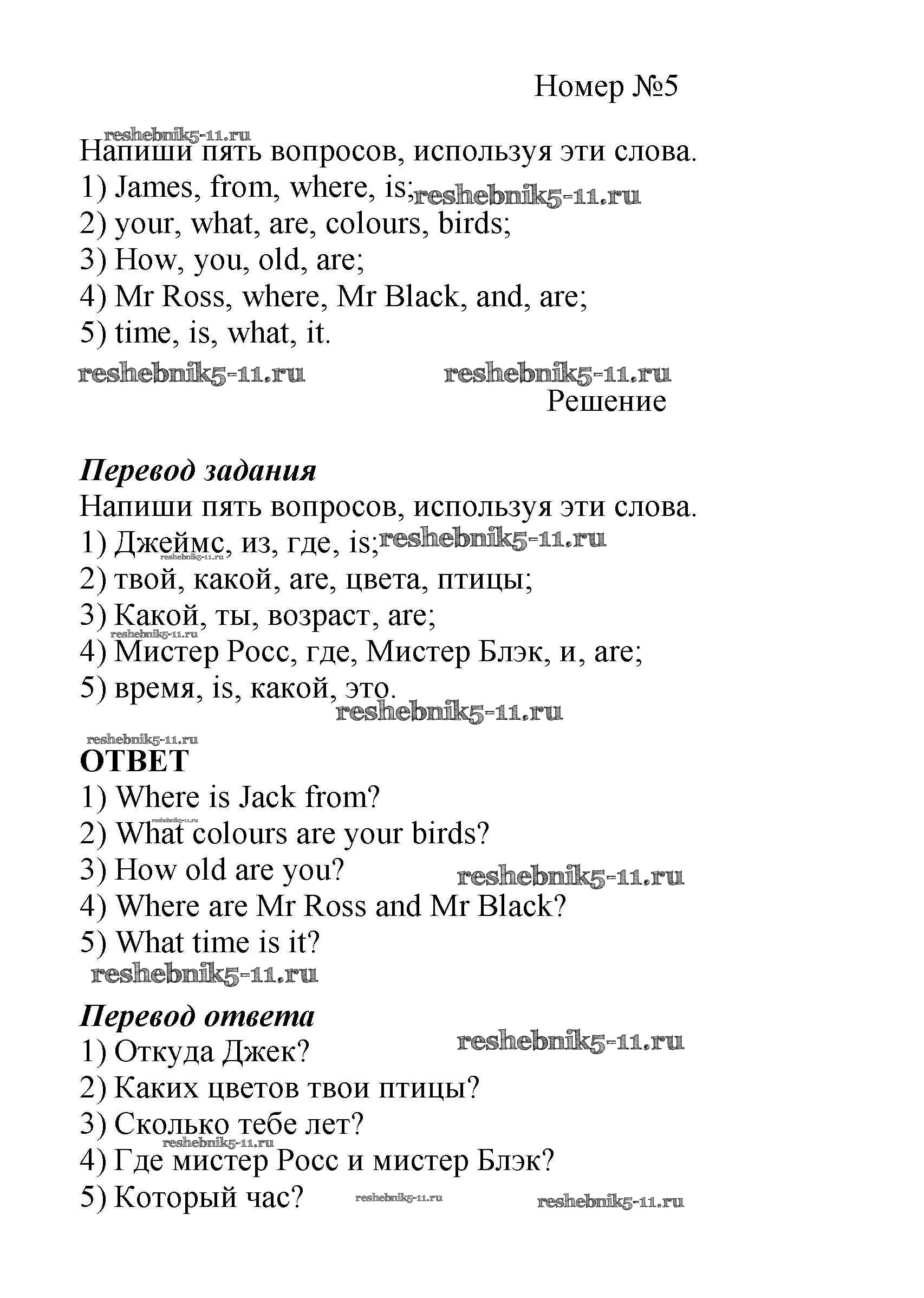 Готовая домашняя работа с ответами по Английскому языку за 5 класс Афанасьева, Михеева Рабочая тетрадь Новый курс Часть 1, 2 Дрофа 2017 ФГОС - Unit 6 5