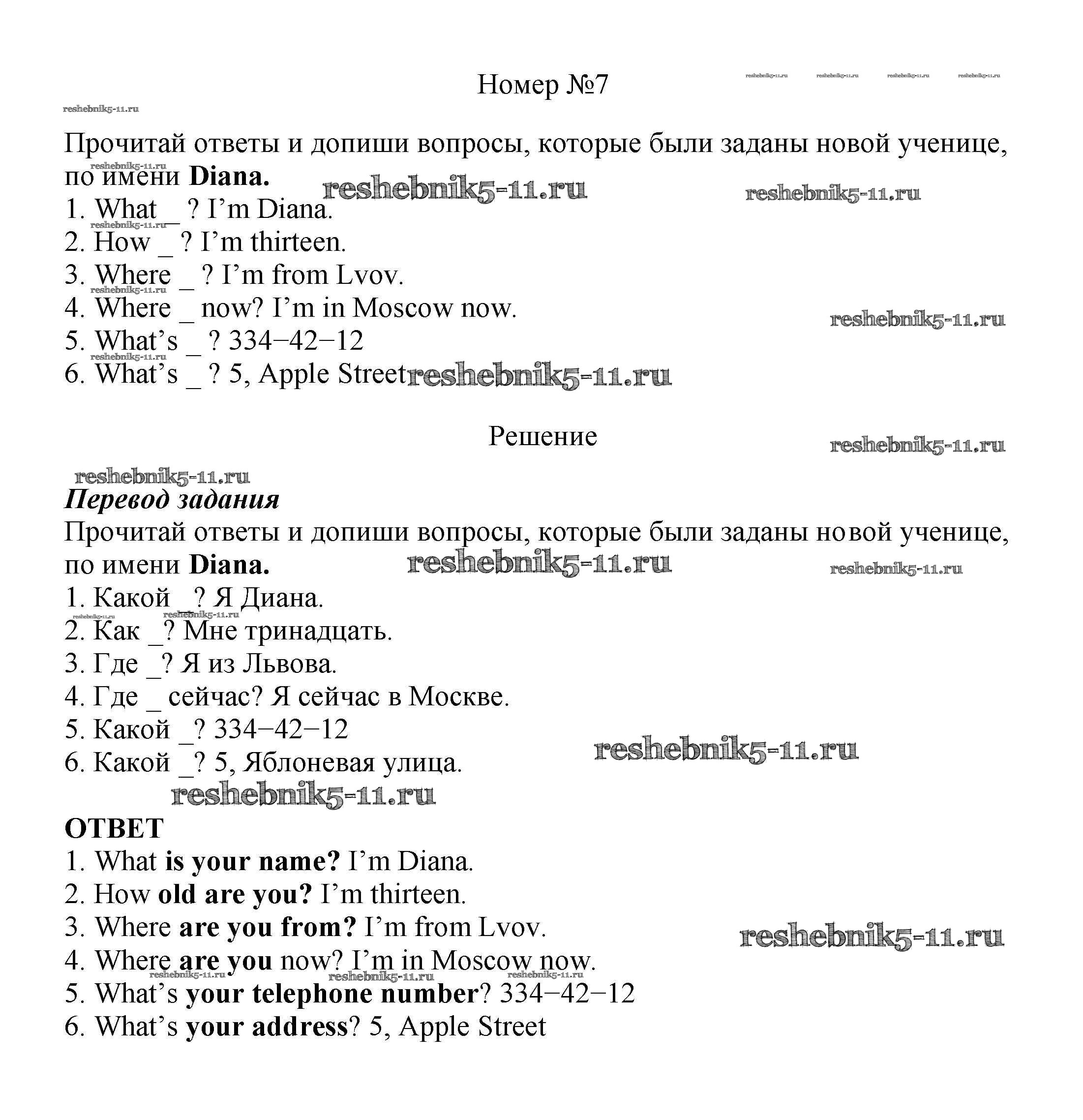 Готовая домашняя работа с ответами по Английскому языку за 5 класс Афанасьева, Михеева Рабочая тетрадь Новый курс Часть 1, 2 Дрофа 2017 ФГОС - Unit 7 7