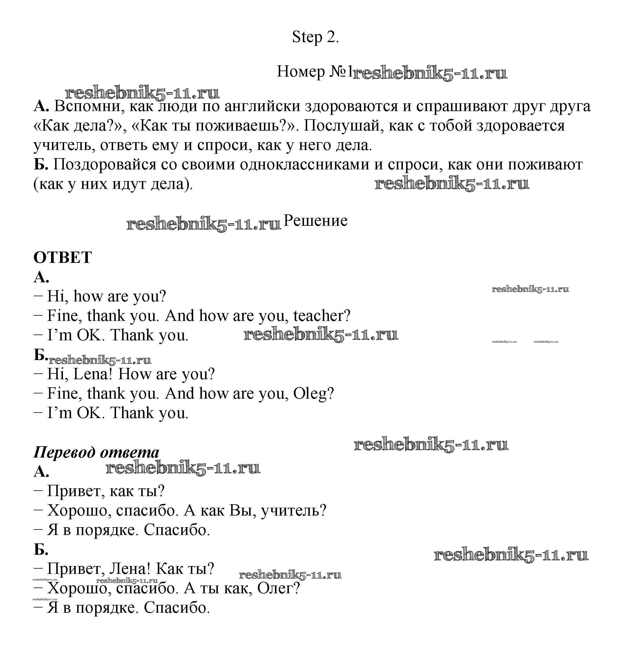 Готовая домашняя работа с ответами по Английскому языку за 5 класс Афанасьева, Михеева Учебник Новый курс Дрофа 2017 ФГОС - Step 2 1