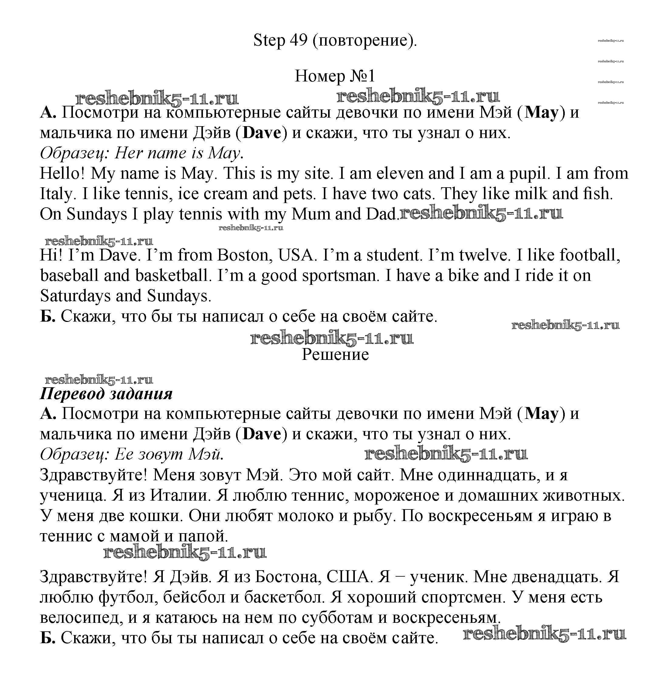 Готовая домашняя работа с ответами по Английскому языку за 5 класс Афанасьева, Михеева Учебник Новый курс Дрофа 2017 ФГОС - Step 49 1