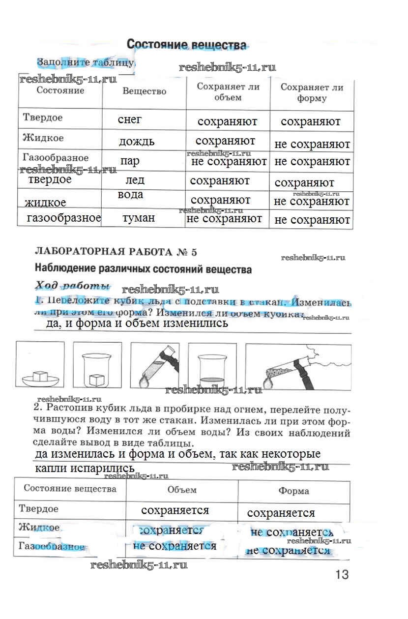 Готовая домашняя работа с ответами по Физике за 5 класс Гуревич, Краснов, Нотов Рабочая тетрадь Дрофа 2012 ФГОС - Страницы 13