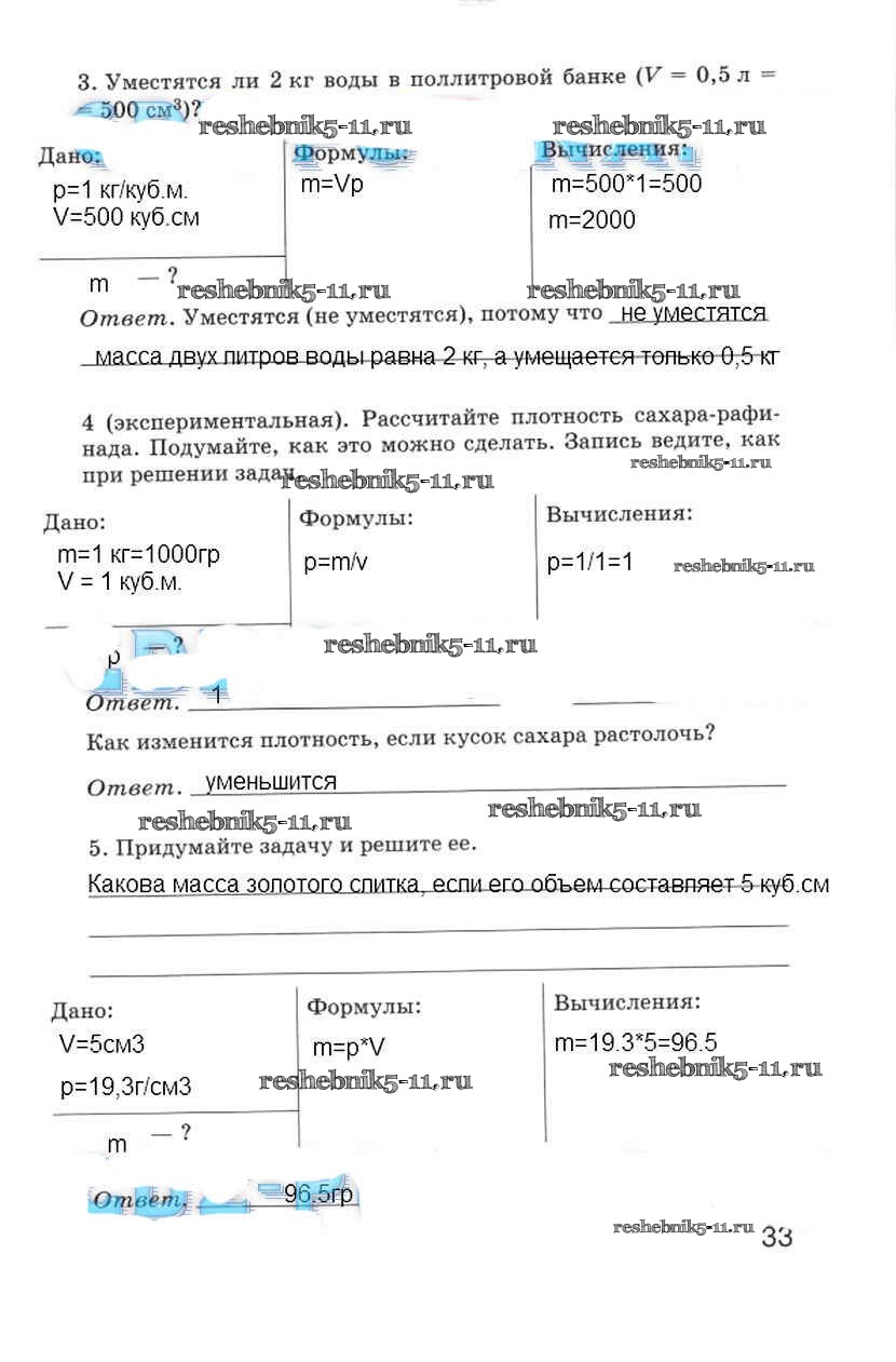 Готовая домашняя работа с ответами по Физике за 5 класс Гуревич, Краснов, Нотов Рабочая тетрадь Дрофа 2012 ФГОС - Страницы 33