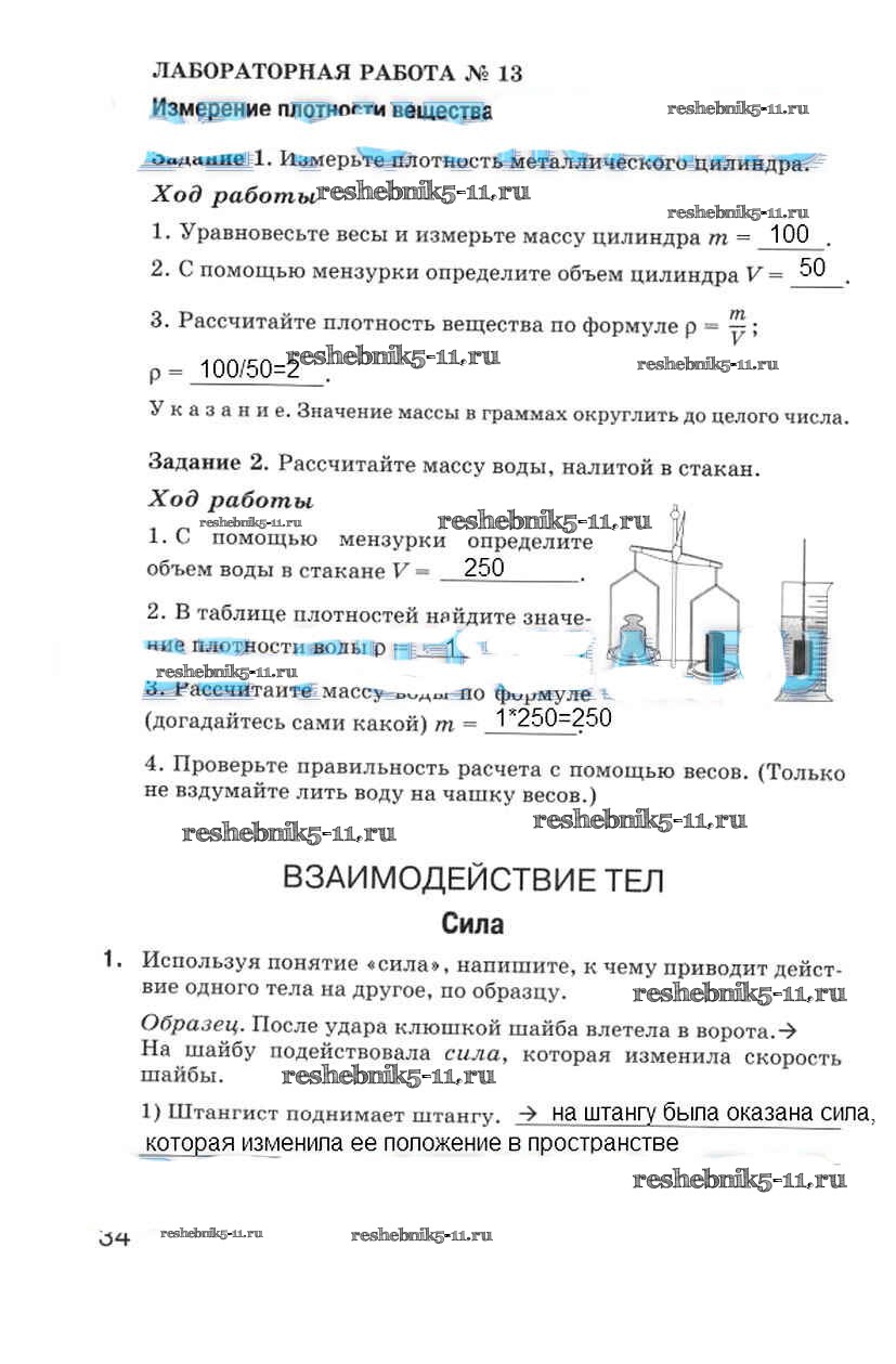 Готовая домашняя работа с ответами по Физике за 5 класс Гуревич, Краснов, Нотов Рабочая тетрадь Дрофа 2012 ФГОС - Страницы 34