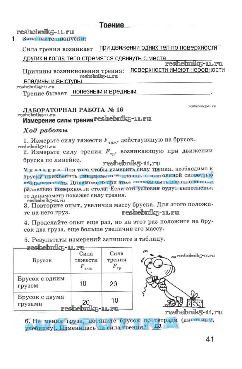 Готовая домашняя работа с ответами по Физике за 5 класс Гуревич, Краснов, Нотов Рабочая тетрадь Дрофа 2012 ФГОС - Страницы 41