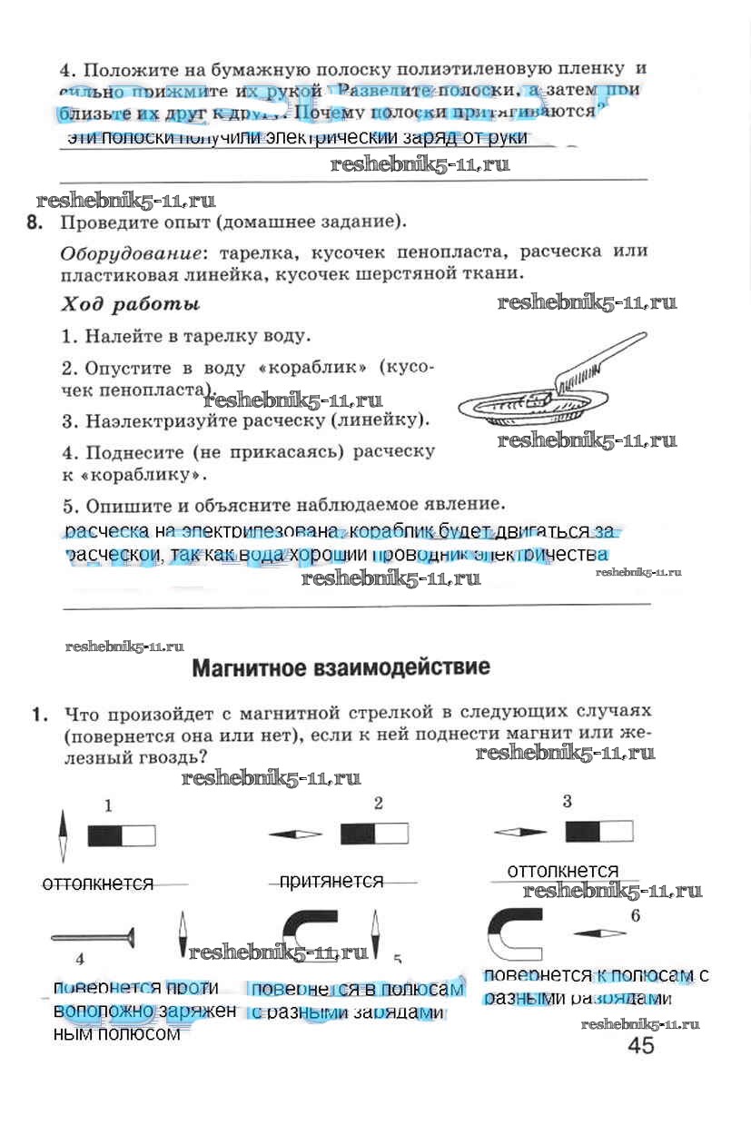 Готовая домашняя работа с ответами по Физике за 5 класс Гуревич, Краснов, Нотов Рабочая тетрадь Дрофа 2012 ФГОС - Страницы 45