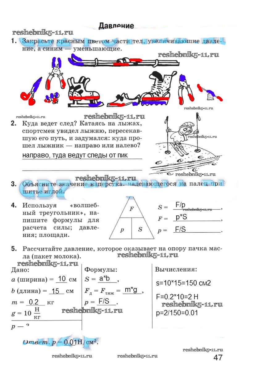 Готовая домашняя работа с ответами по Физике за 5 класс Гуревич, Краснов, Нотов Рабочая тетрадь Дрофа 2012 ФГОС - Страницы 47