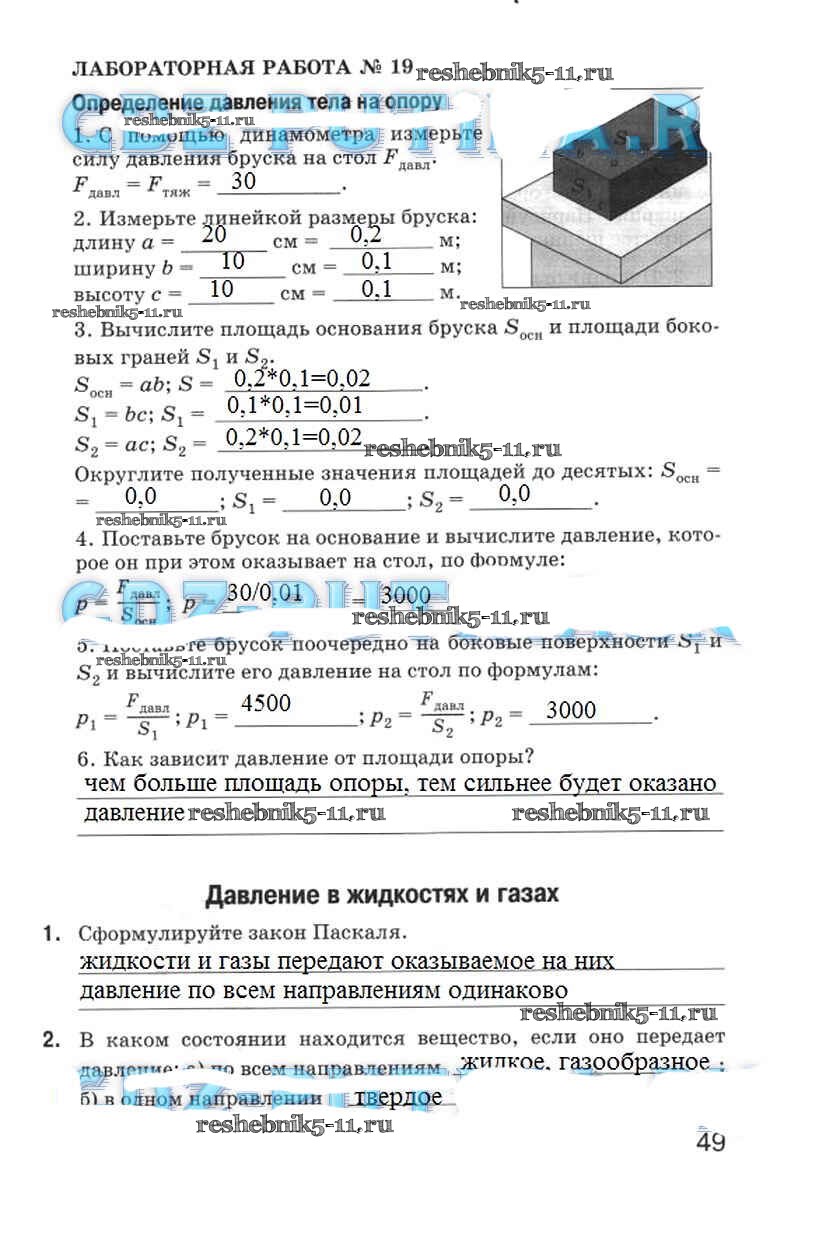 Готовая домашняя работа с ответами по Физике за 5 класс Гуревич, Краснов, Нотов Рабочая тетрадь Дрофа 2012 ФГОС - Страницы 49