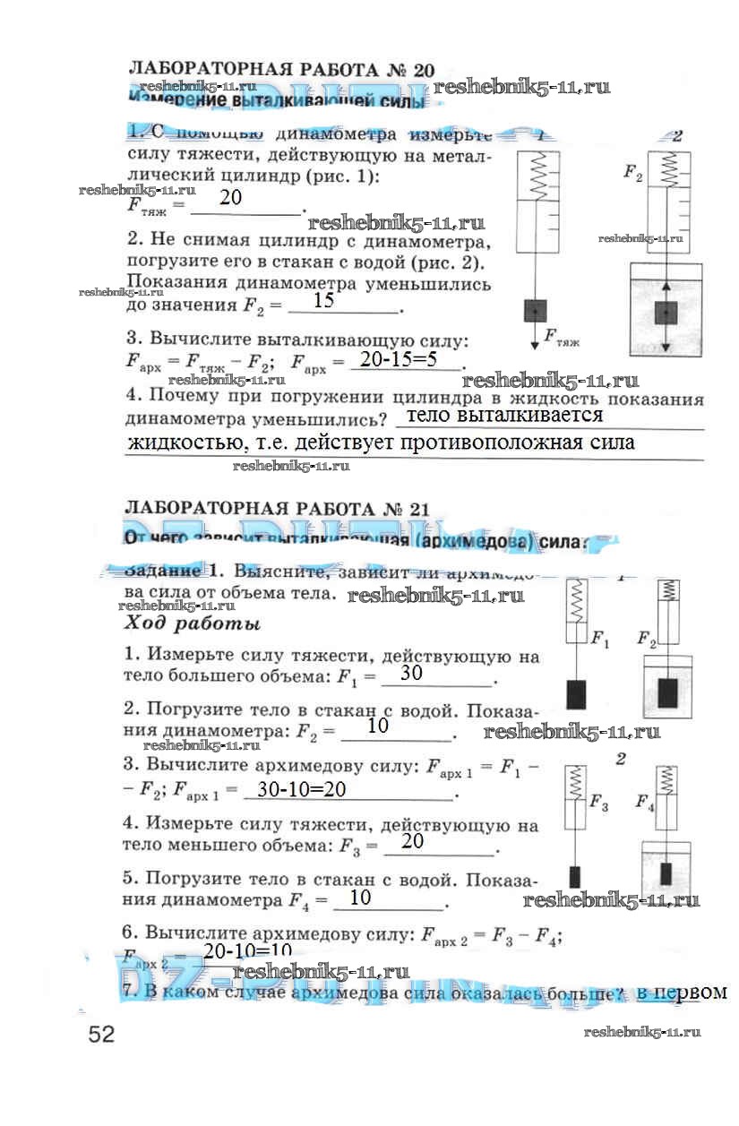Готовая домашняя работа с ответами по Физике за 5 класс Гуревич, Краснов, Нотов Рабочая тетрадь Дрофа 2012 ФГОС - Страницы 52