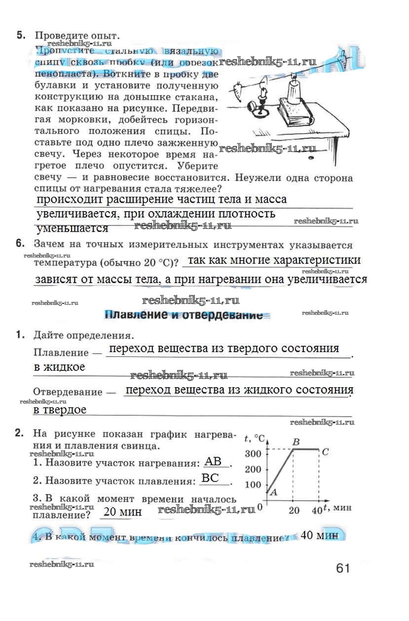 Готовая домашняя работа с ответами по Физике за 5 класс Гуревич, Краснов, Нотов Рабочая тетрадь Дрофа 2012 ФГОС - Страницы 61