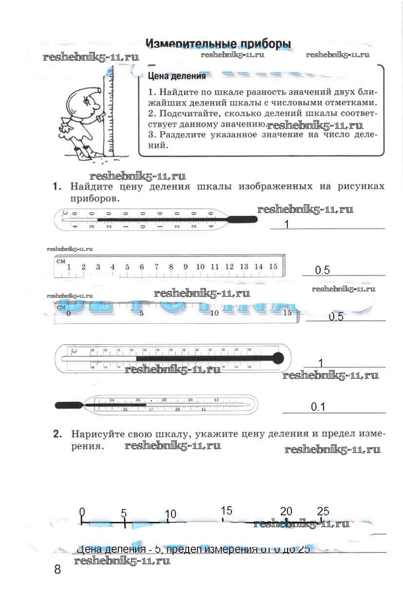 Готовая домашняя работа с ответами по Физике за 5 класс Гуревич, Краснов, Нотов Рабочая тетрадь Дрофа 2012 ФГОС - Страницы 8