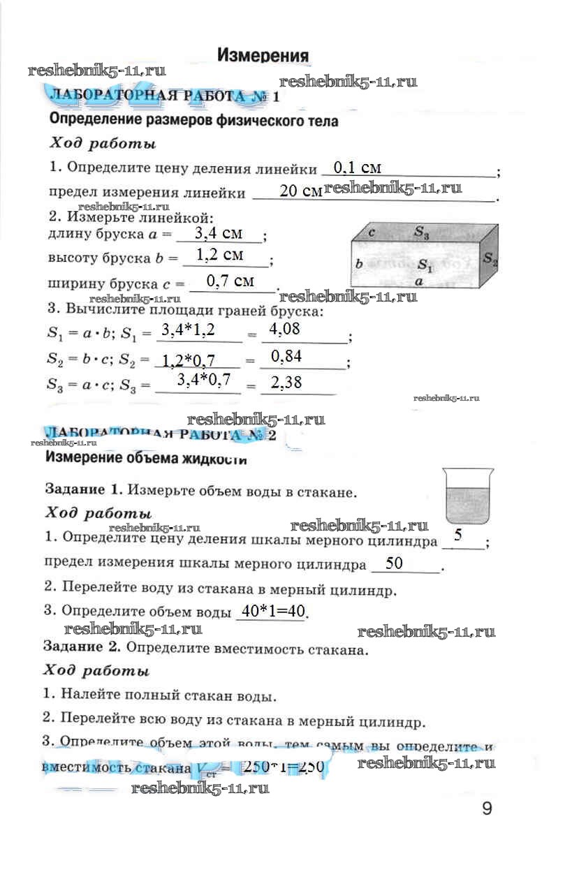 Готовая домашняя работа с ответами по Физике за 5 класс Гуревич, Краснов, Нотов Рабочая тетрадь Дрофа 2012 ФГОС - Страницы 9