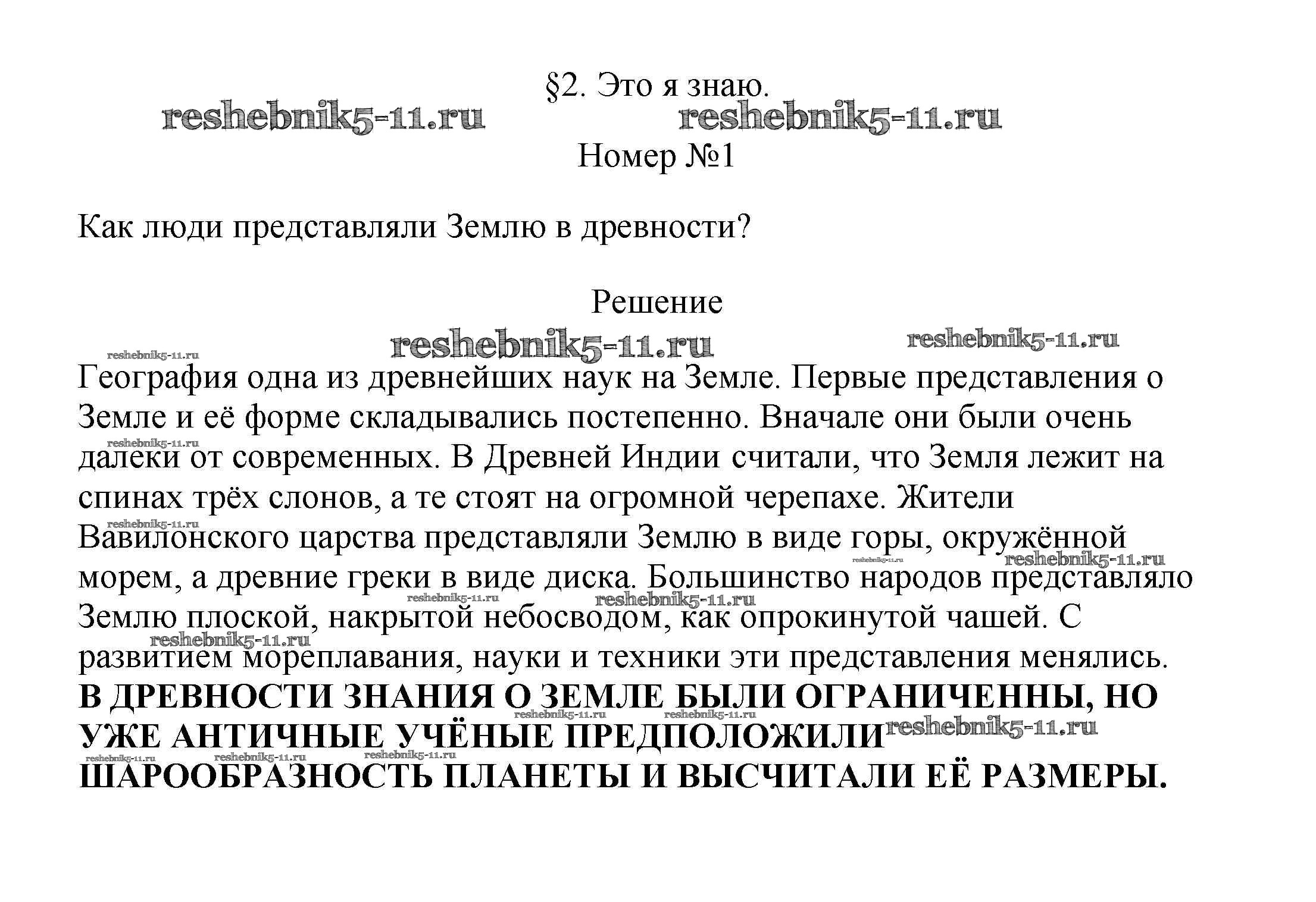 Готовая домашняя работа с ответами по Географии за 5, 6 класс Алексеев, Николина, Липкина Учебник Полярная звезда Просвещение 2018 ФГОС - §2. Как люди открывали Землю (1) 1