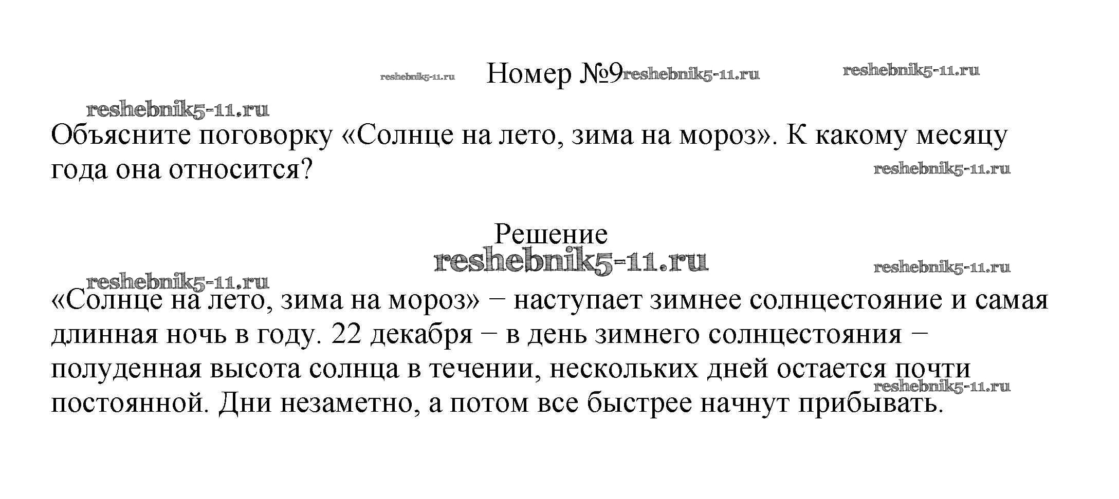 Готовая домашняя работа с ответами по Географии за 5, 6 класс Алексеев, Николина, Липкина Учебник Полярная звезда Просвещение 2018 ФГОС - §7. Солнечный свет на Земле 9