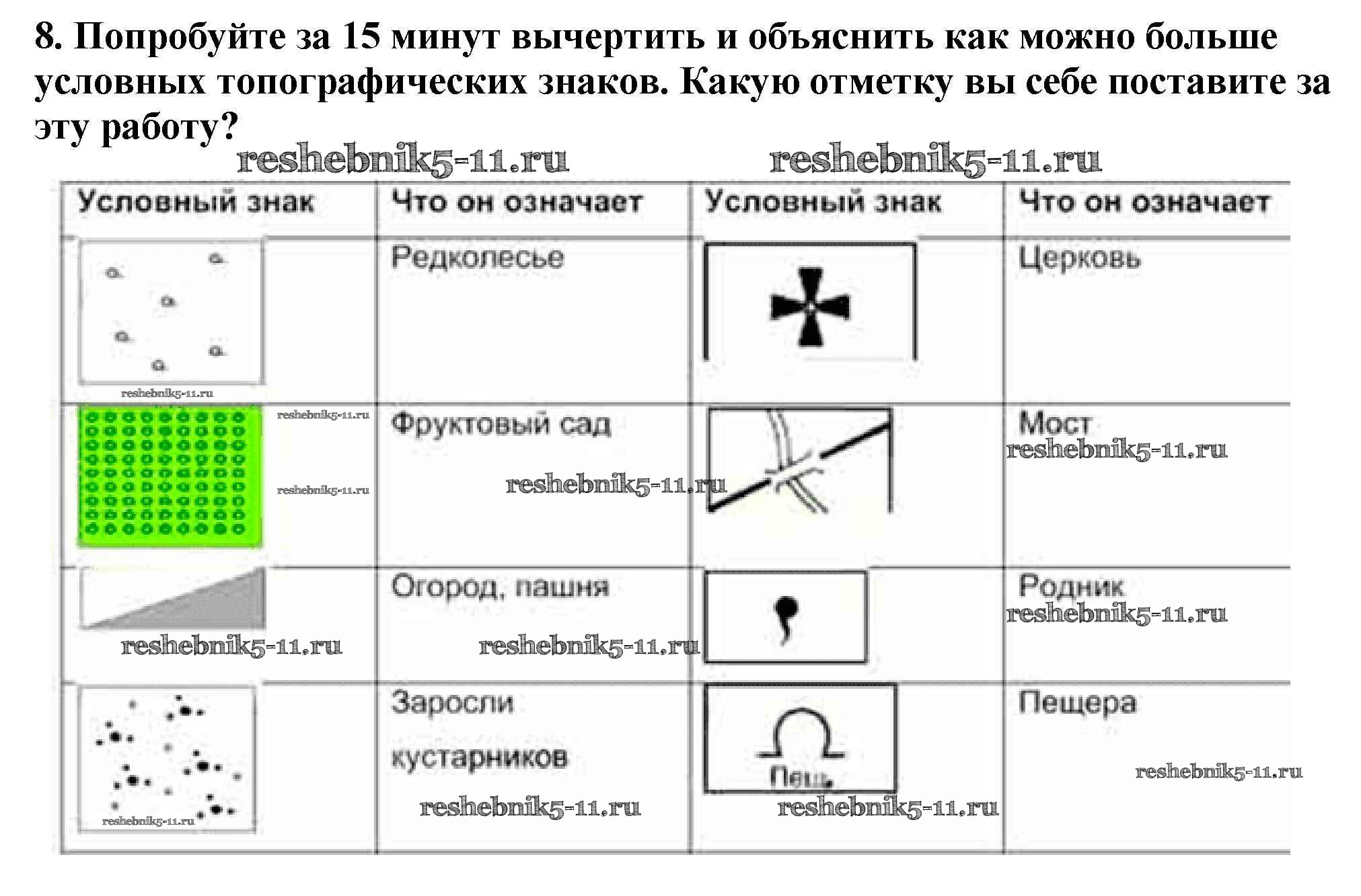 Готовая домашняя работа с ответами по Географии за 5, 6 класс Алексеев, Николина, Липкина Учебник Полярная звезда Просвещение 2018 ФГОС - §9. Земная поверхность на плане и на карте (1) 8