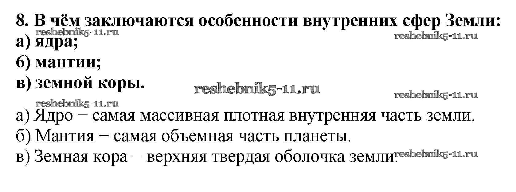 Готовая домашняя работа с ответами по Географии за 5, 6 класс Алексеев, Николина, Липкина Учебник Полярная звезда Просвещение 2018 ФГОС - §20. Земная кора - верхняя часть литосферы 8