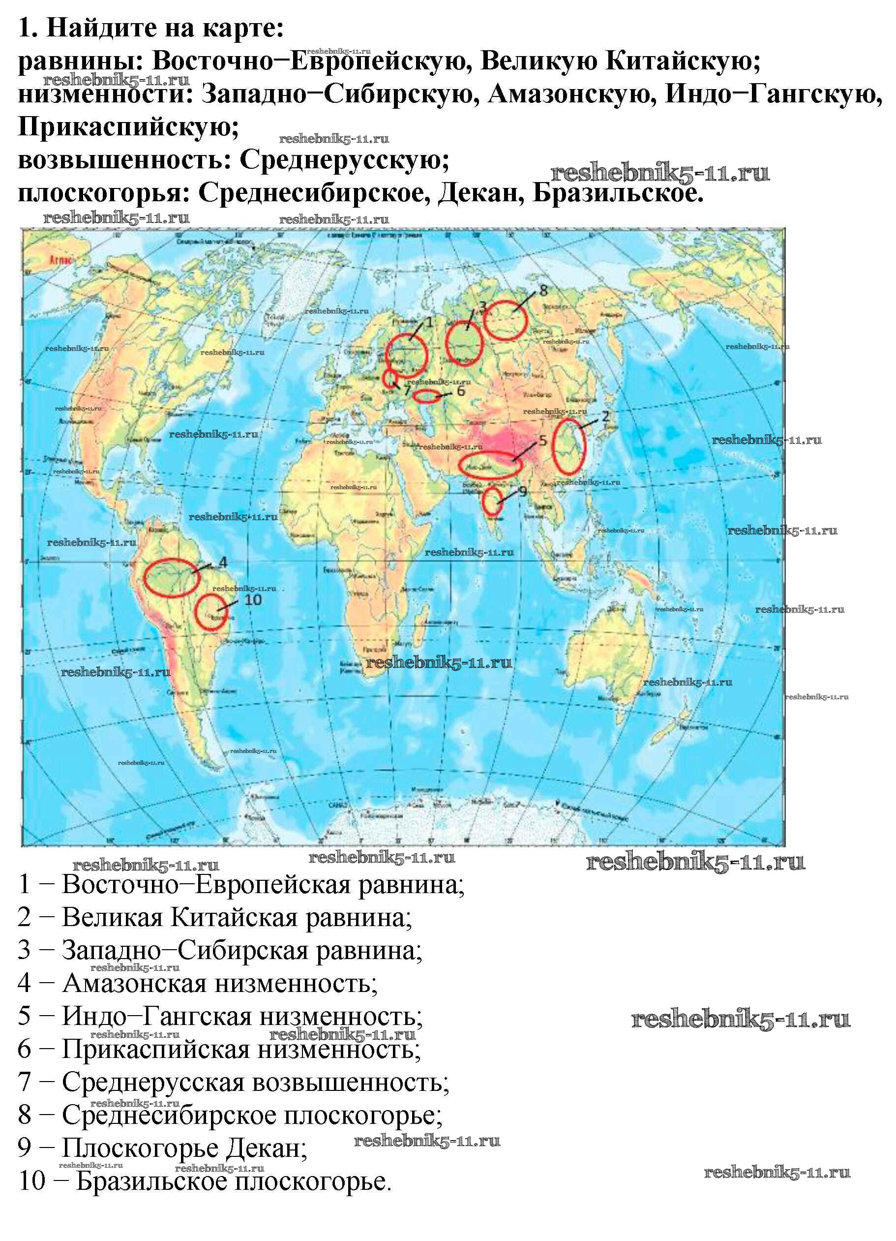 Готовая домашняя работа с ответами по Географии за 5, 6 класс Алексеев, Николина, Липкина Учебник Полярная звезда Просвещение 2018 ФГОС - §24. Рельеф Земли. Равнины 1