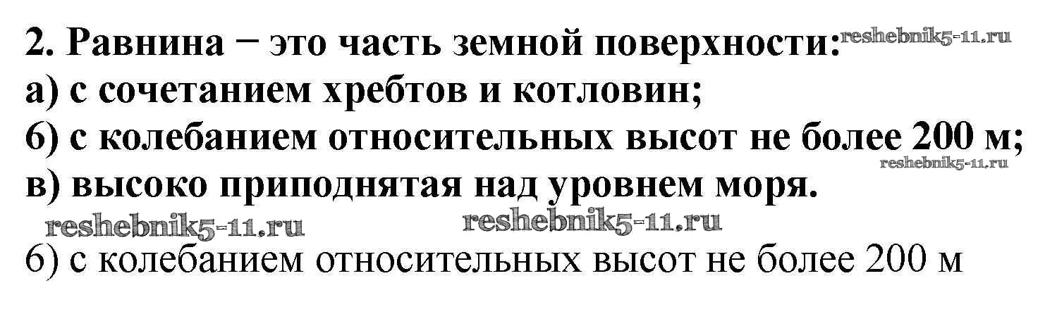 Готовая домашняя работа с ответами по Географии за 5, 6 класс Алексеев, Николина, Липкина Учебник Полярная звезда Просвещение 2018 ФГОС - §24. Рельеф Земли. Равнины 2
