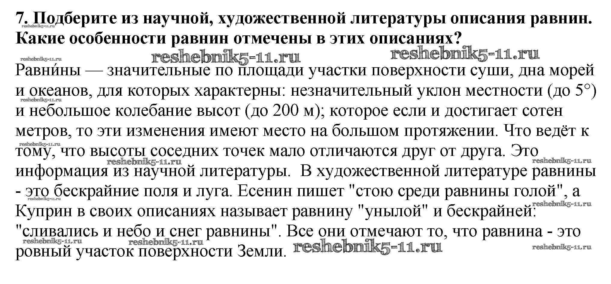 Готовая домашняя работа с ответами по Географии за 5, 6 класс Алексеев, Николина, Липкина Учебник Полярная звезда Просвещение 2018 ФГОС - §24. Рельеф Земли. Равнины 7