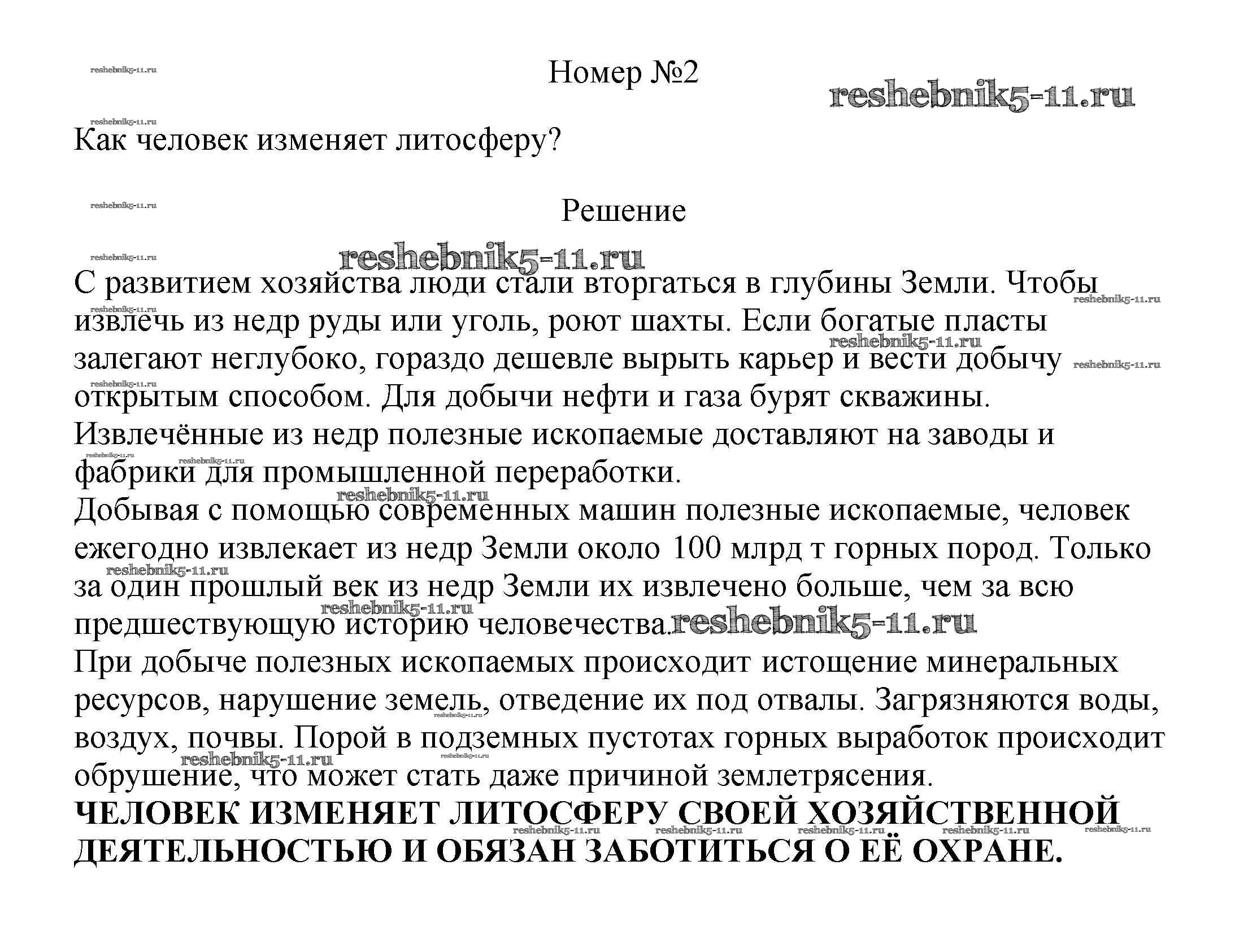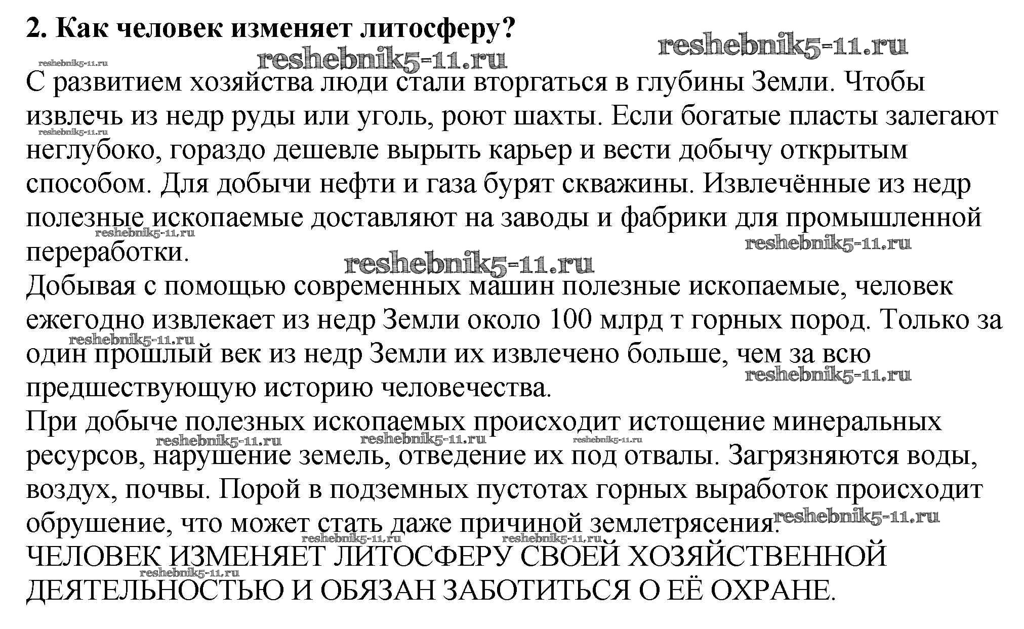 Готовая домашняя работа с ответами по Географии за 5, 6 класс Алексеев, Николина, Липкина Учебник Полярная звезда Просвещение 2018 ФГОС - §27. Литосфера и человек 2