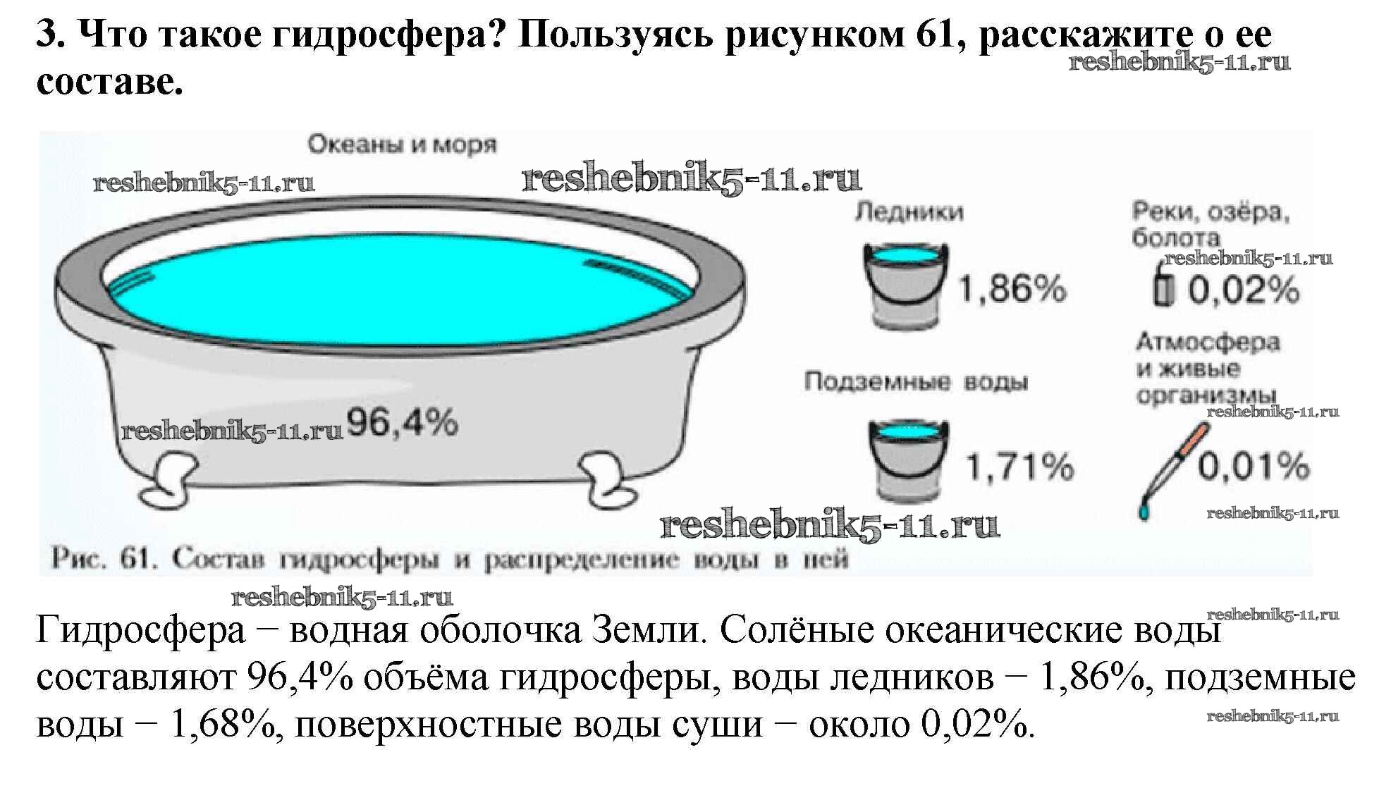 Готовая домашняя работа с ответами по Географии за 5, 6 класс Алексеев, Николина, Липкина Учебник Полярная звезда Просвещение 2018 ФГОС - §28. Состав и строение гидросферы 3