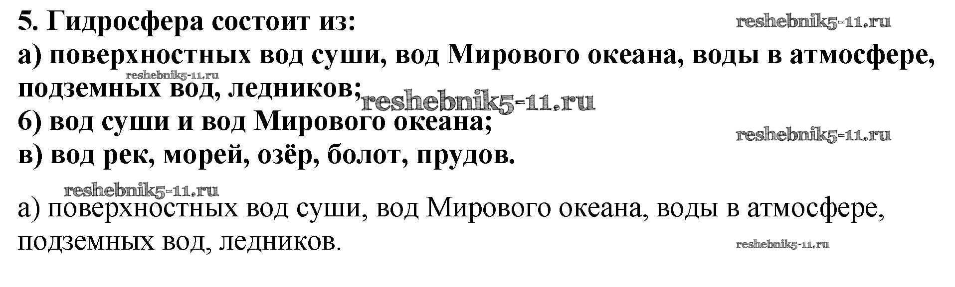Готовая домашняя работа с ответами по Географии за 5, 6 класс Алексеев, Николина, Липкина Учебник Полярная звезда Просвещение 2018 ФГОС - §28. Состав и строение гидросферы 5