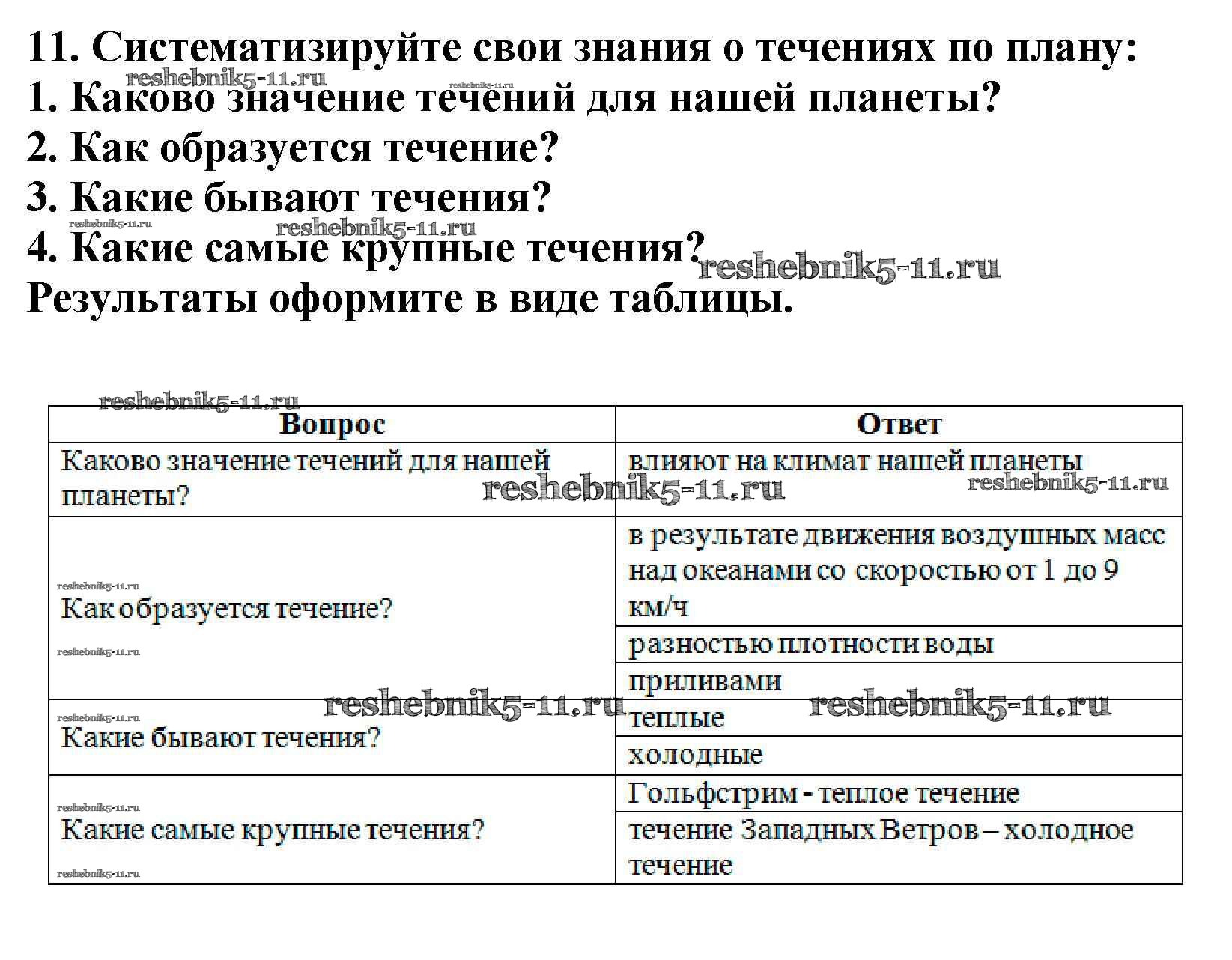Готовая домашняя работа с ответами по Географии за 5, 6 класс Алексеев, Николина, Липкина Учебник Полярная звезда Просвещение 2018 ФГОС - §32. Воды Океана 11