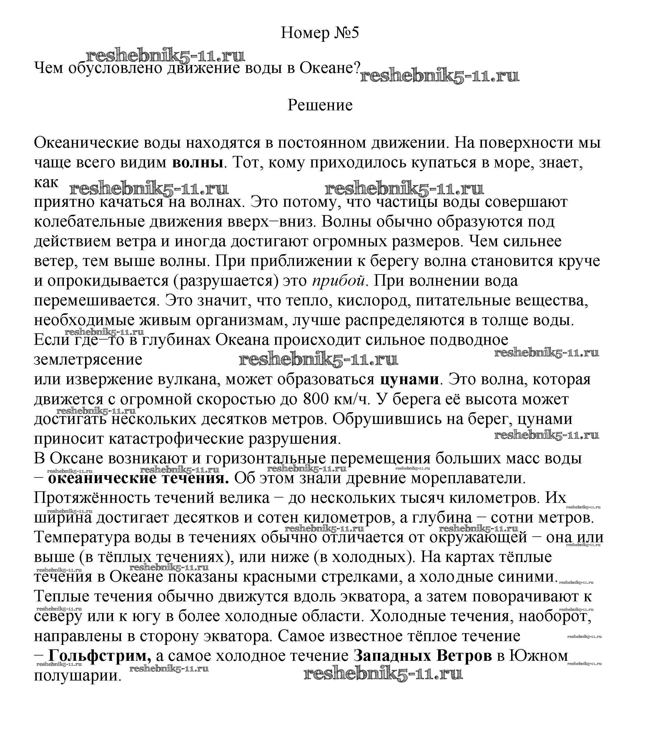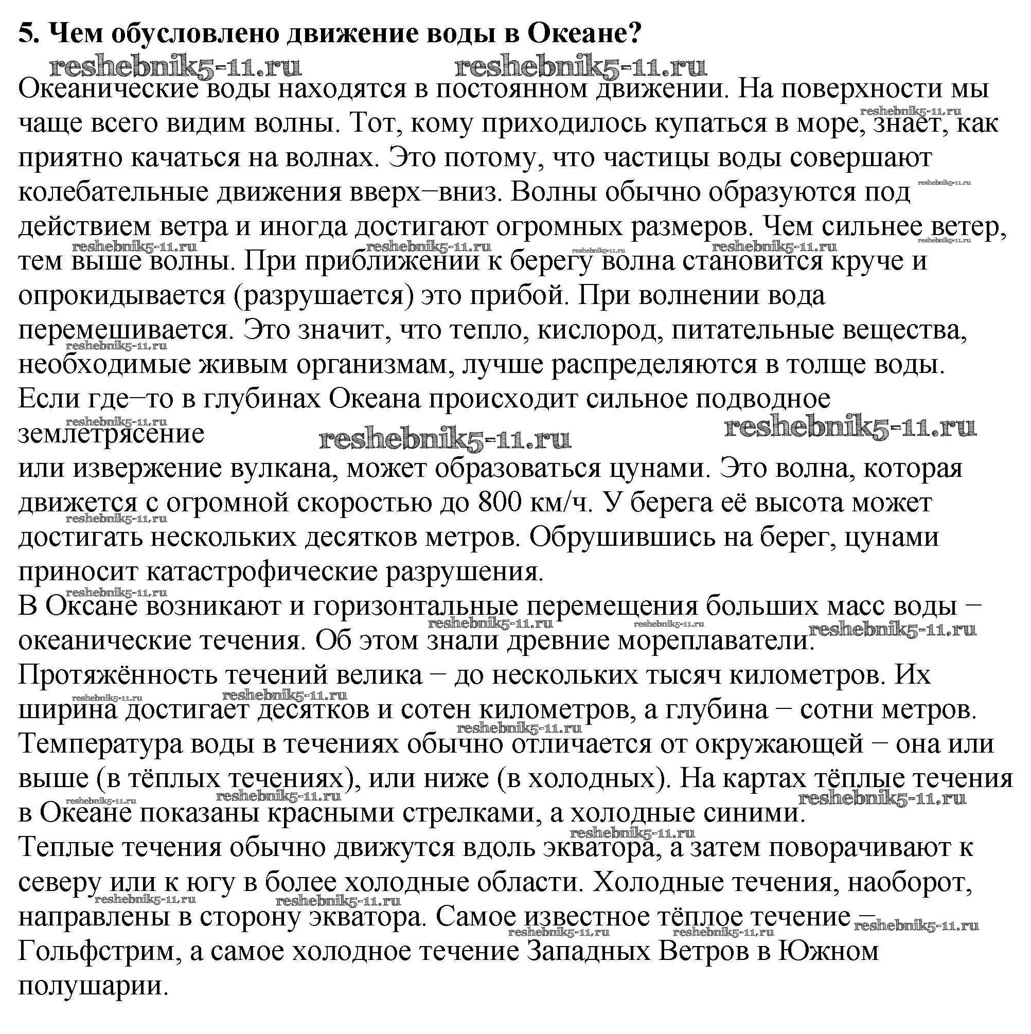 Готовая домашняя работа с ответами по Географии за 5, 6 класс Алексеев, Николина, Липкина Учебник Полярная звезда Просвещение 2018 ФГОС - §32. Воды Океана 5