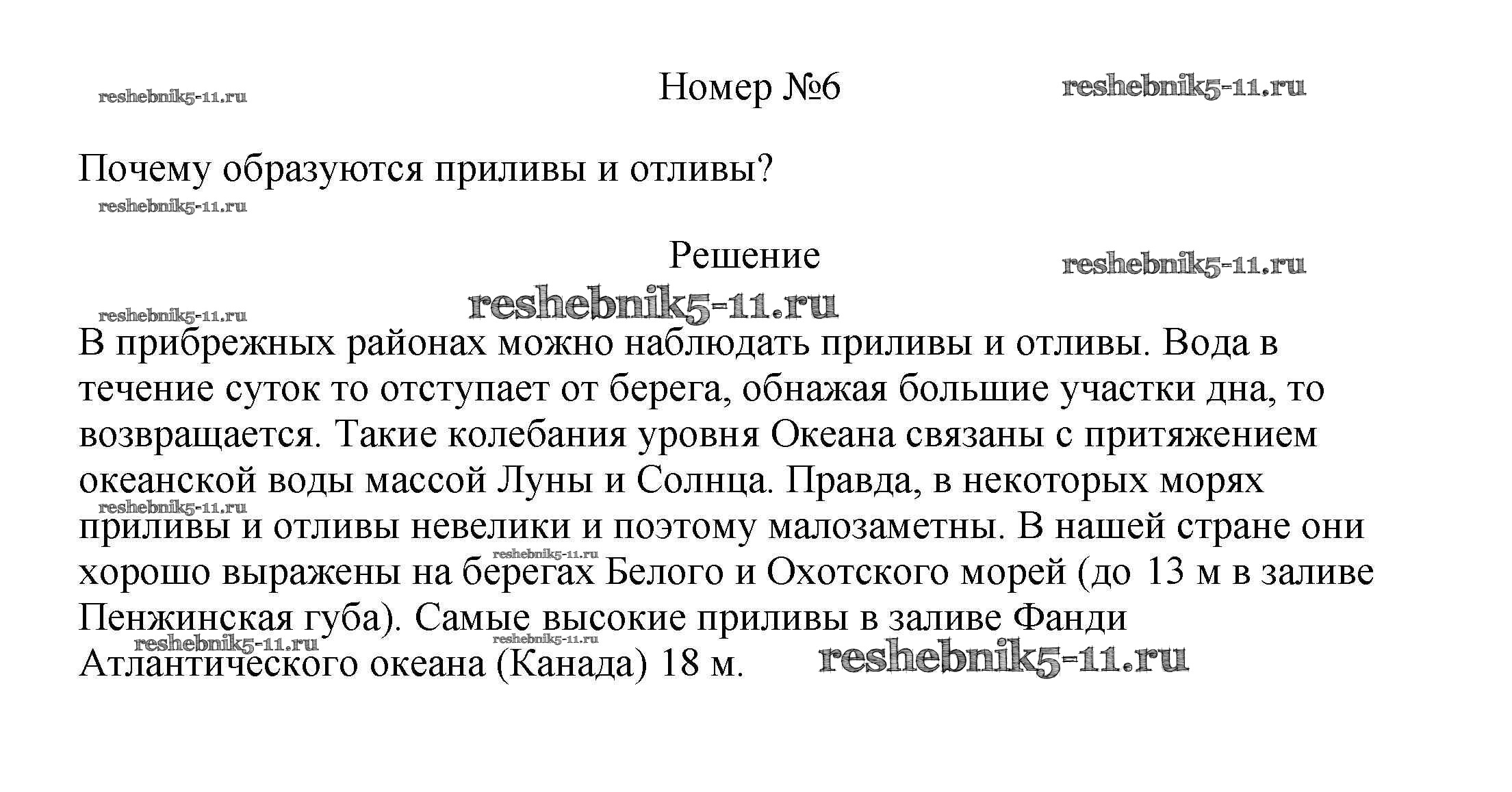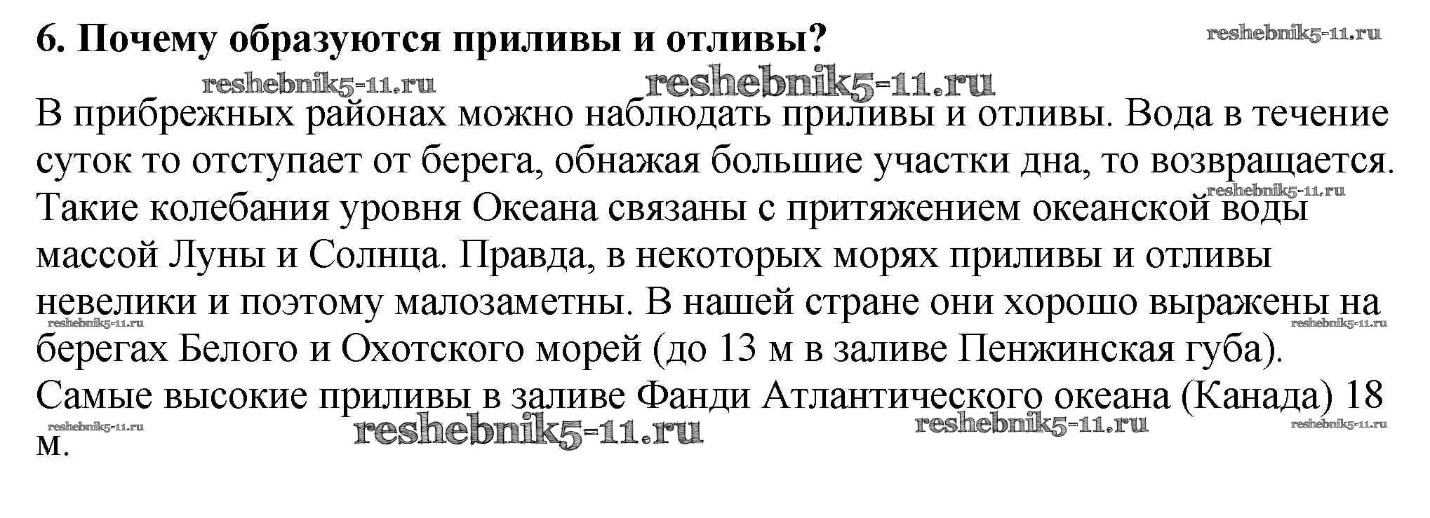 Готовая домашняя работа с ответами по Географии за 5, 6 класс Алексеев, Николина, Липкина Учебник Полярная звезда Просвещение 2018 ФГОС - §32. Воды Океана 6