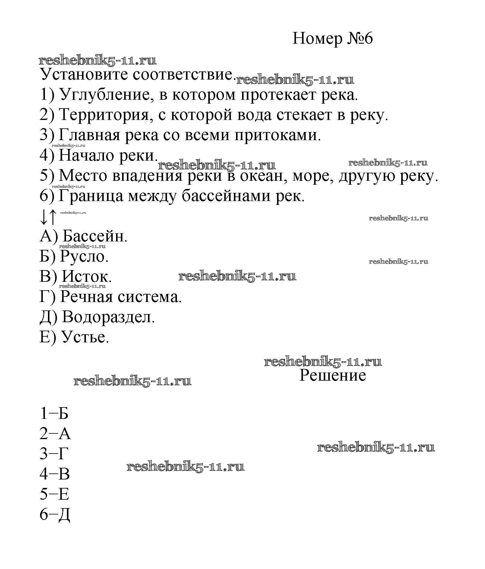 Готовая домашняя работа с ответами по Географии за 5, 6 класс Алексеев, Николина, Липкина Учебник Полярная звезда Просвещение 2018 ФГОС - §34. Реки - артерии Земли (2) 6