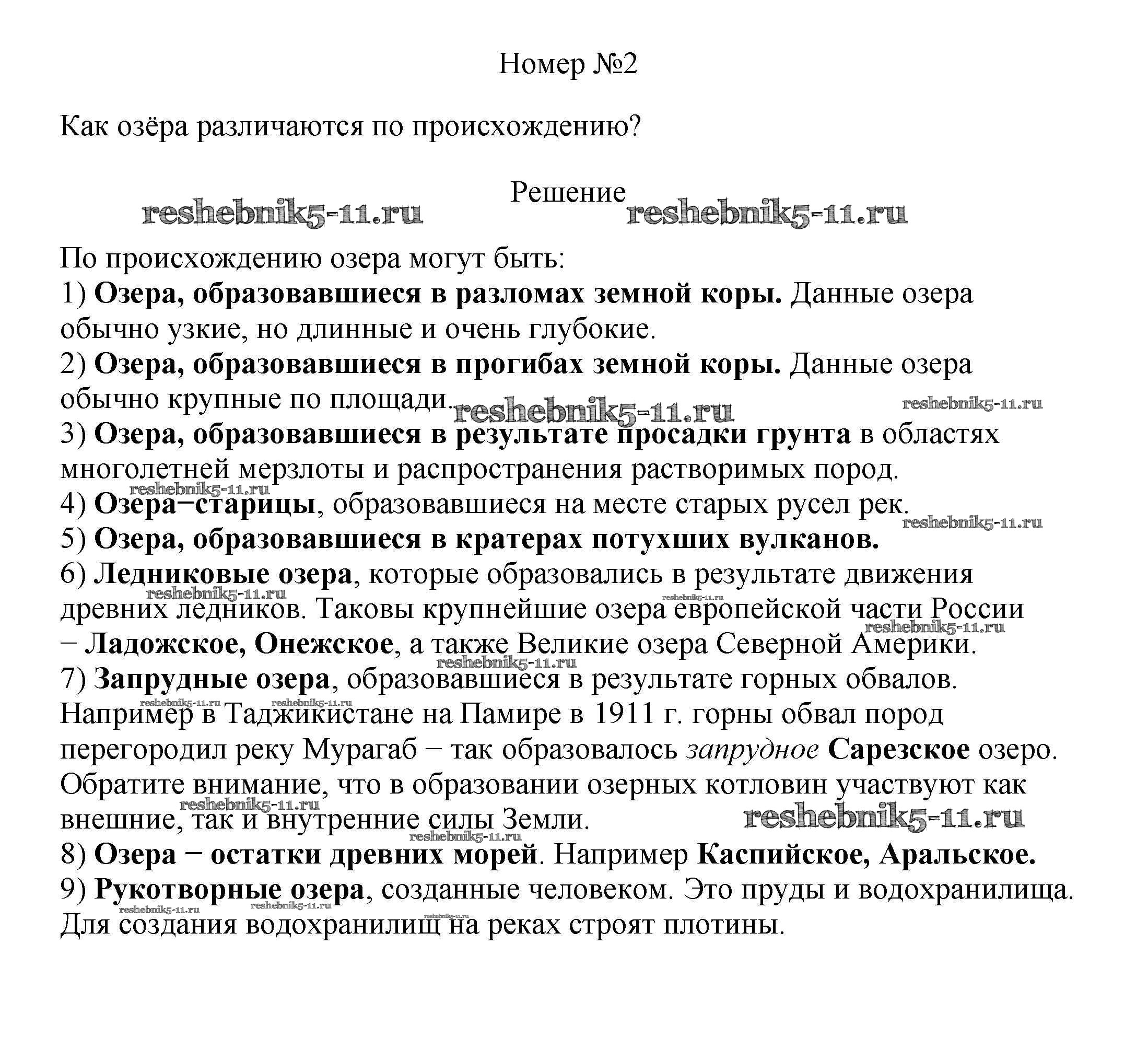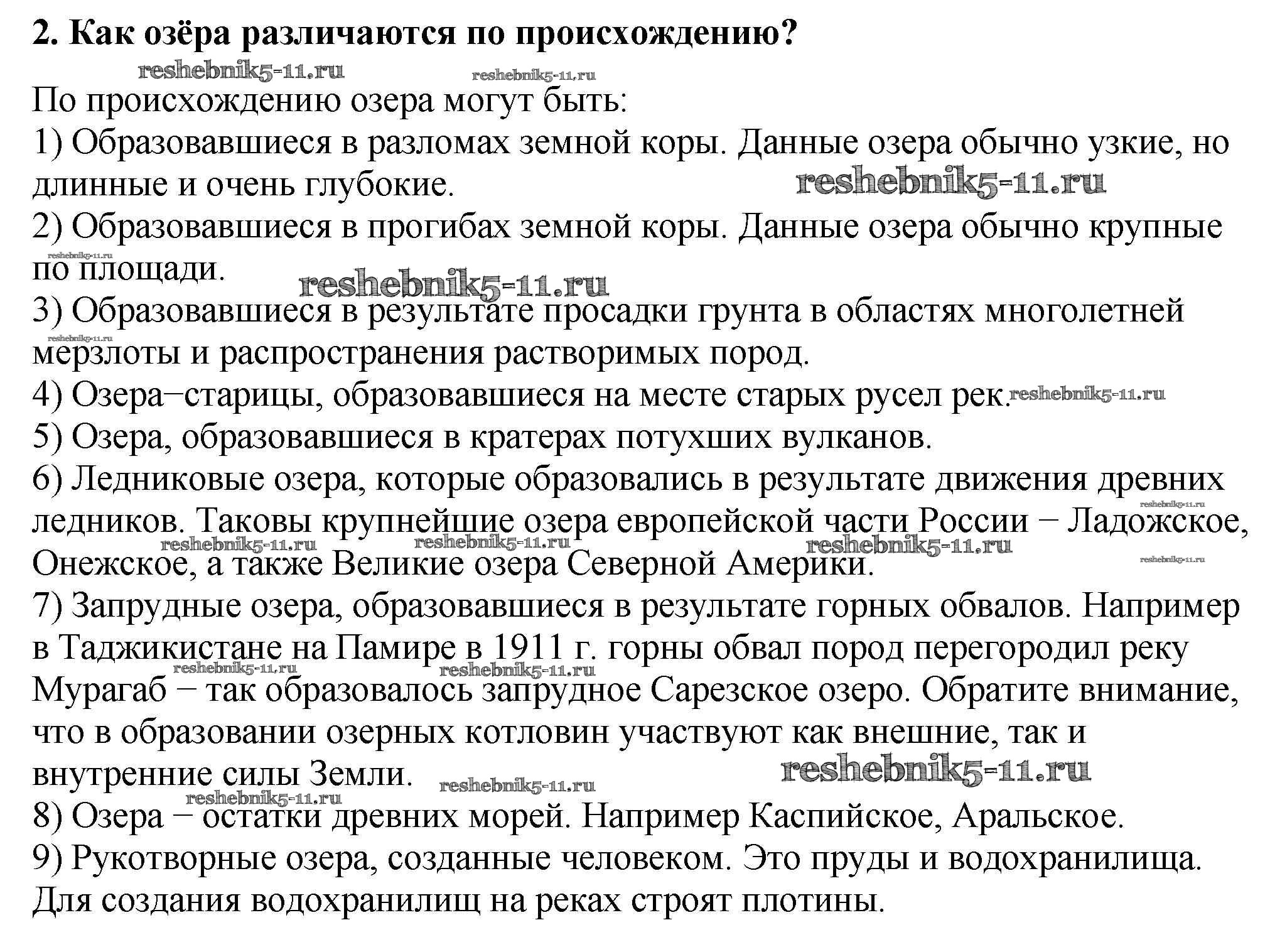 Готовая домашняя работа с ответами по Географии за 5, 6 класс Алексеев, Николина, Липкина Учебник Полярная звезда Просвещение 2018 ФГОС - §35. Озера и болота 2