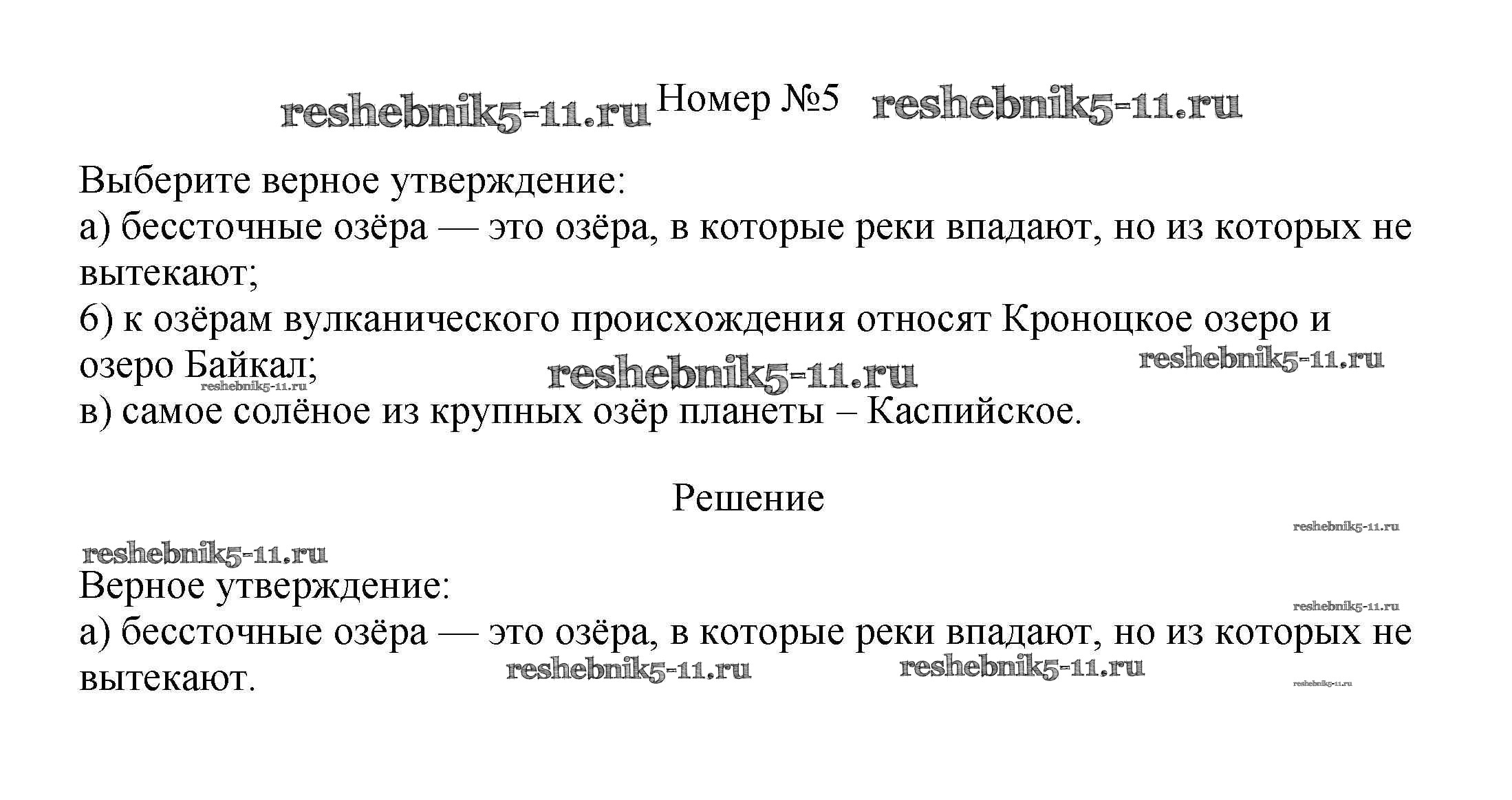 Готовая домашняя работа с ответами по Географии за 5, 6 класс Алексеев, Николина, Липкина Учебник Полярная звезда Просвещение 2018 ФГОС - §35. Озера и болота 5