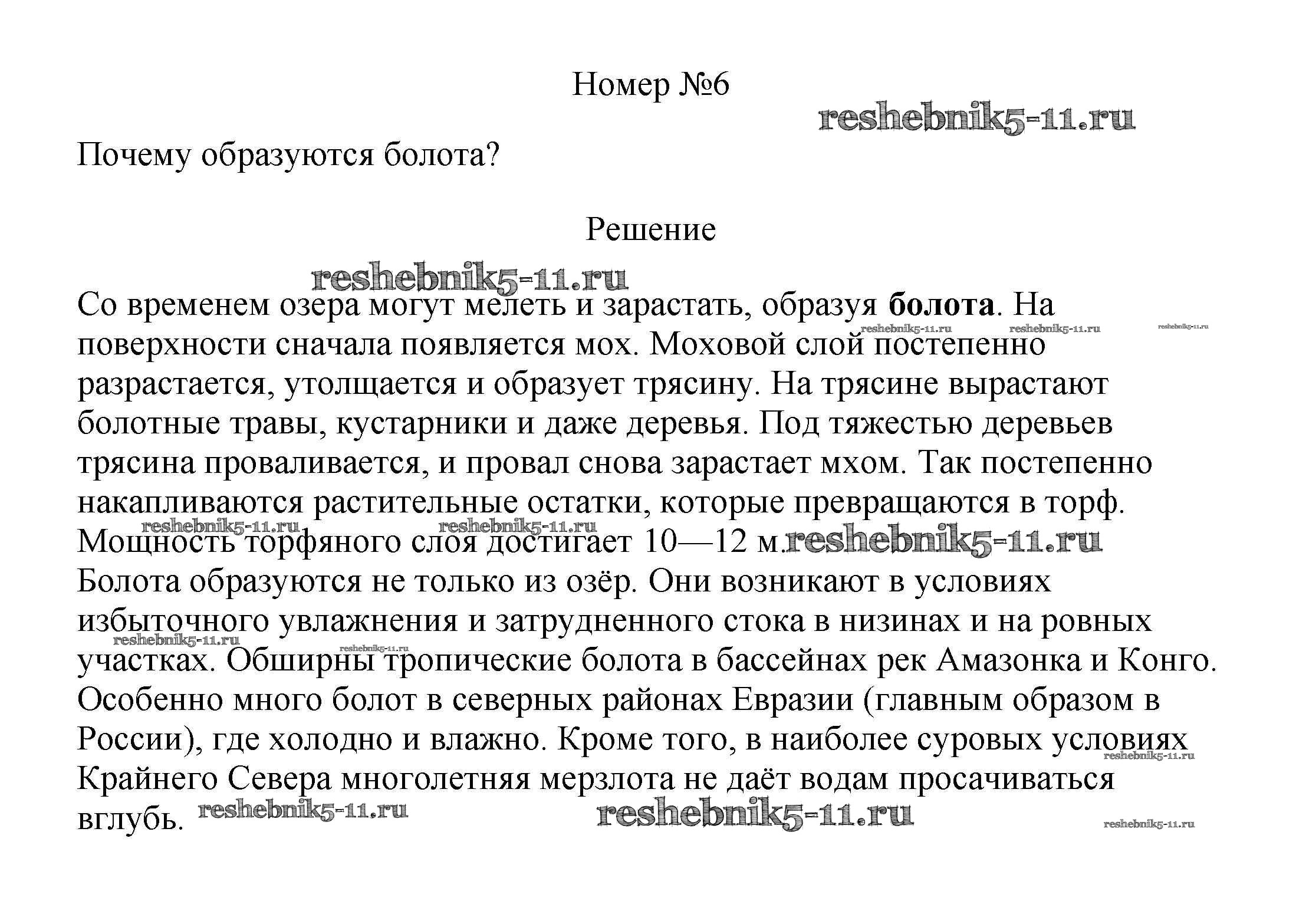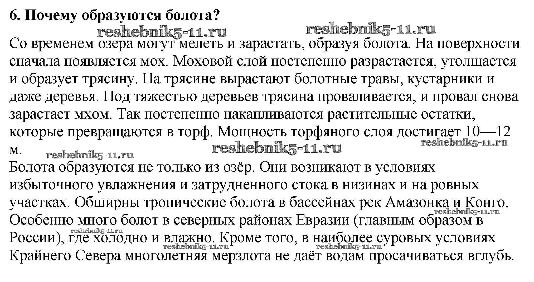 Готовая домашняя работа с ответами по Географии за 5, 6 класс Алексеев, Николина, Липкина Учебник Полярная звезда Просвещение 2018 ФГОС - §35. Озера и болота 6