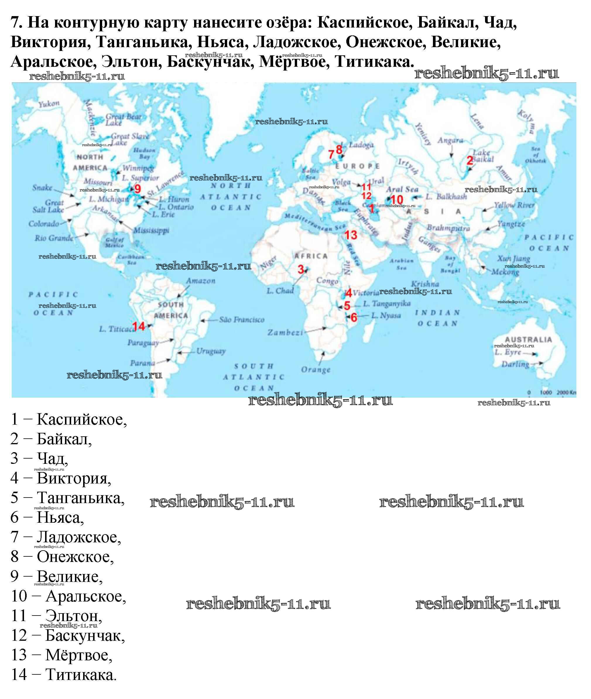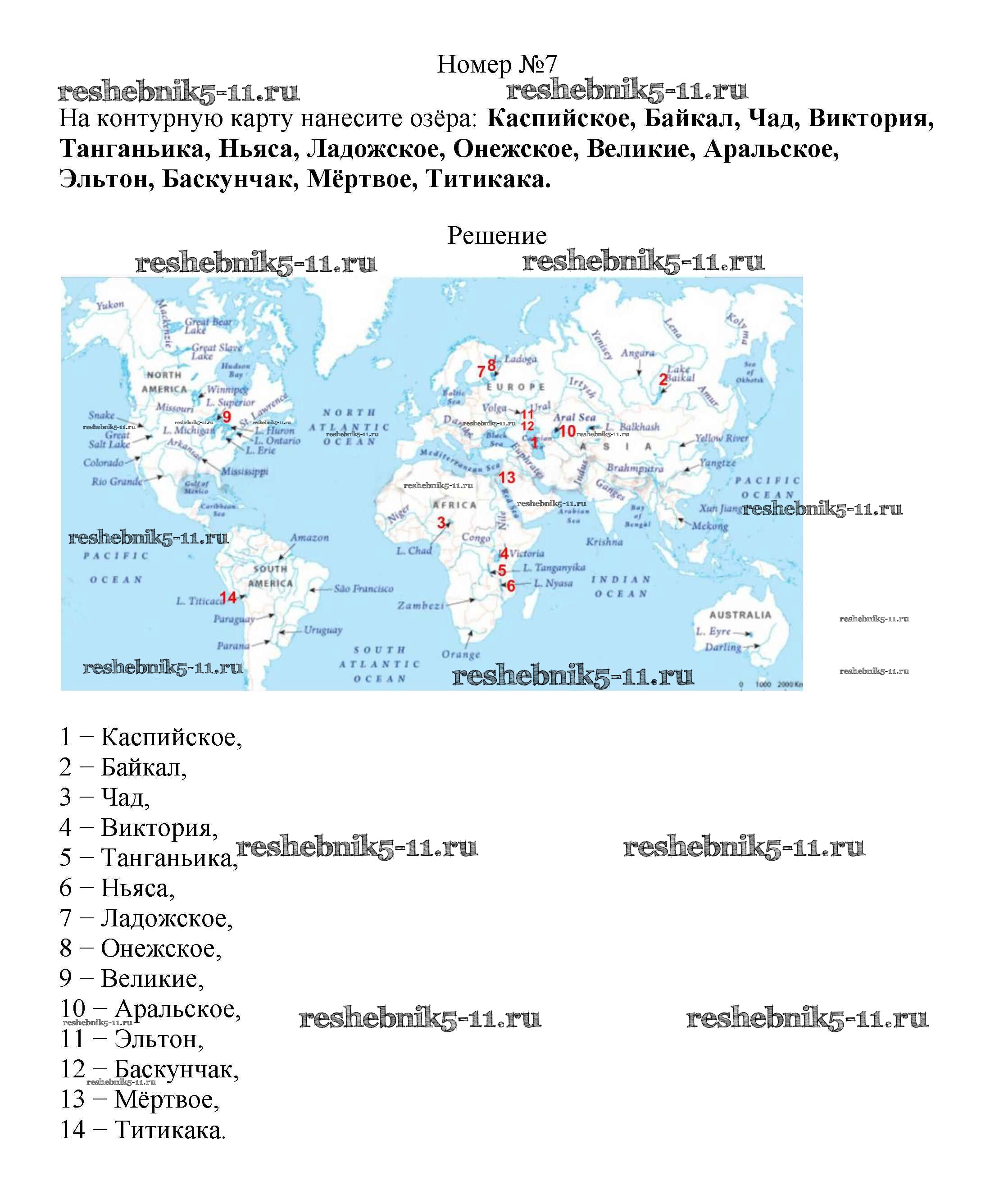 Готовая домашняя работа с ответами по Географии за 5, 6 класс Алексеев, Николина, Липкина Учебник Полярная звезда Просвещение 2018 ФГОС - §35. Озера и болота 7