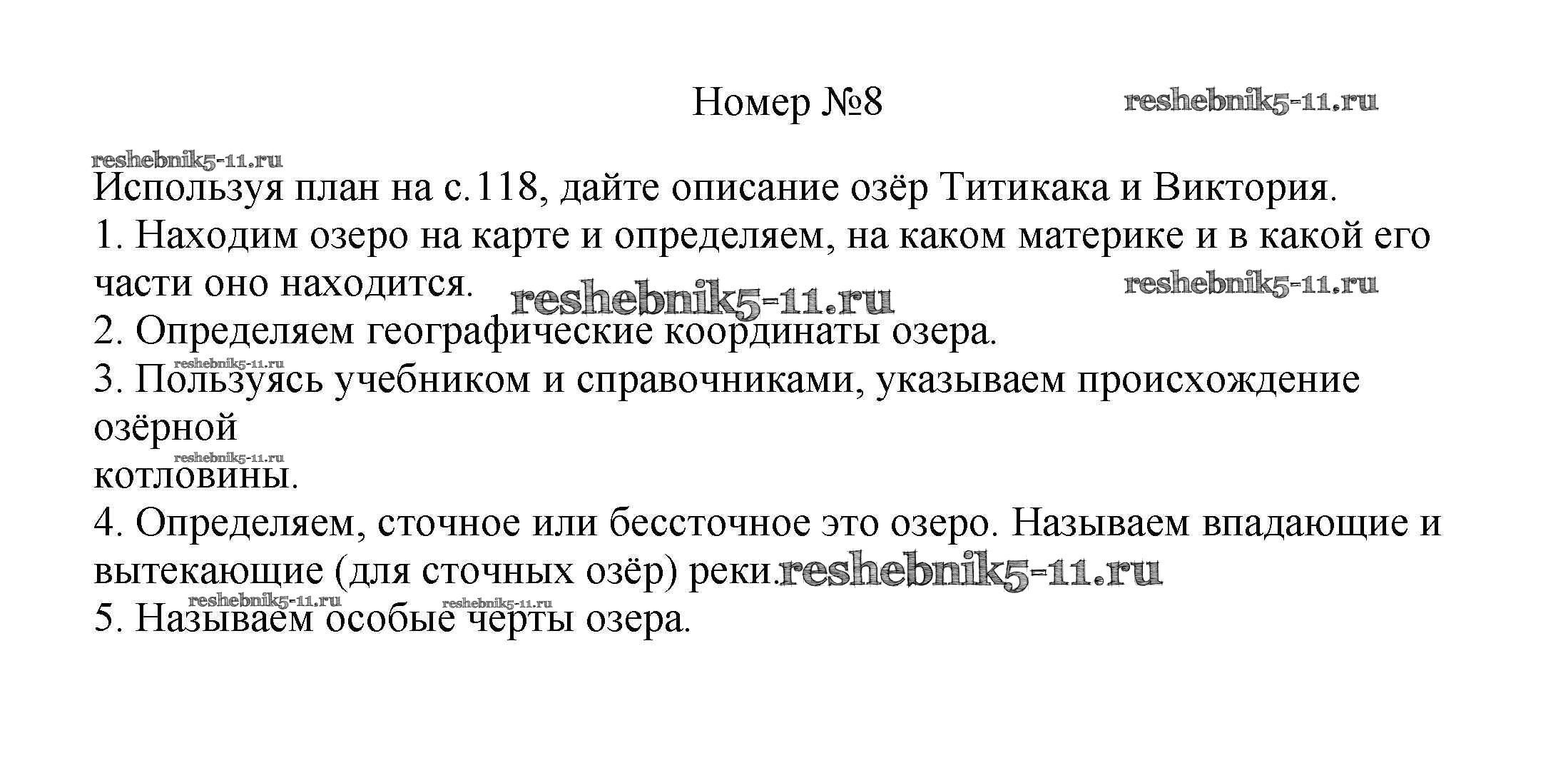 Готовая домашняя работа с ответами по Географии за 5, 6 класс Алексеев, Николина, Липкина Учебник Полярная звезда Просвещение 2018 ФГОС - §35. Озера и болота 8