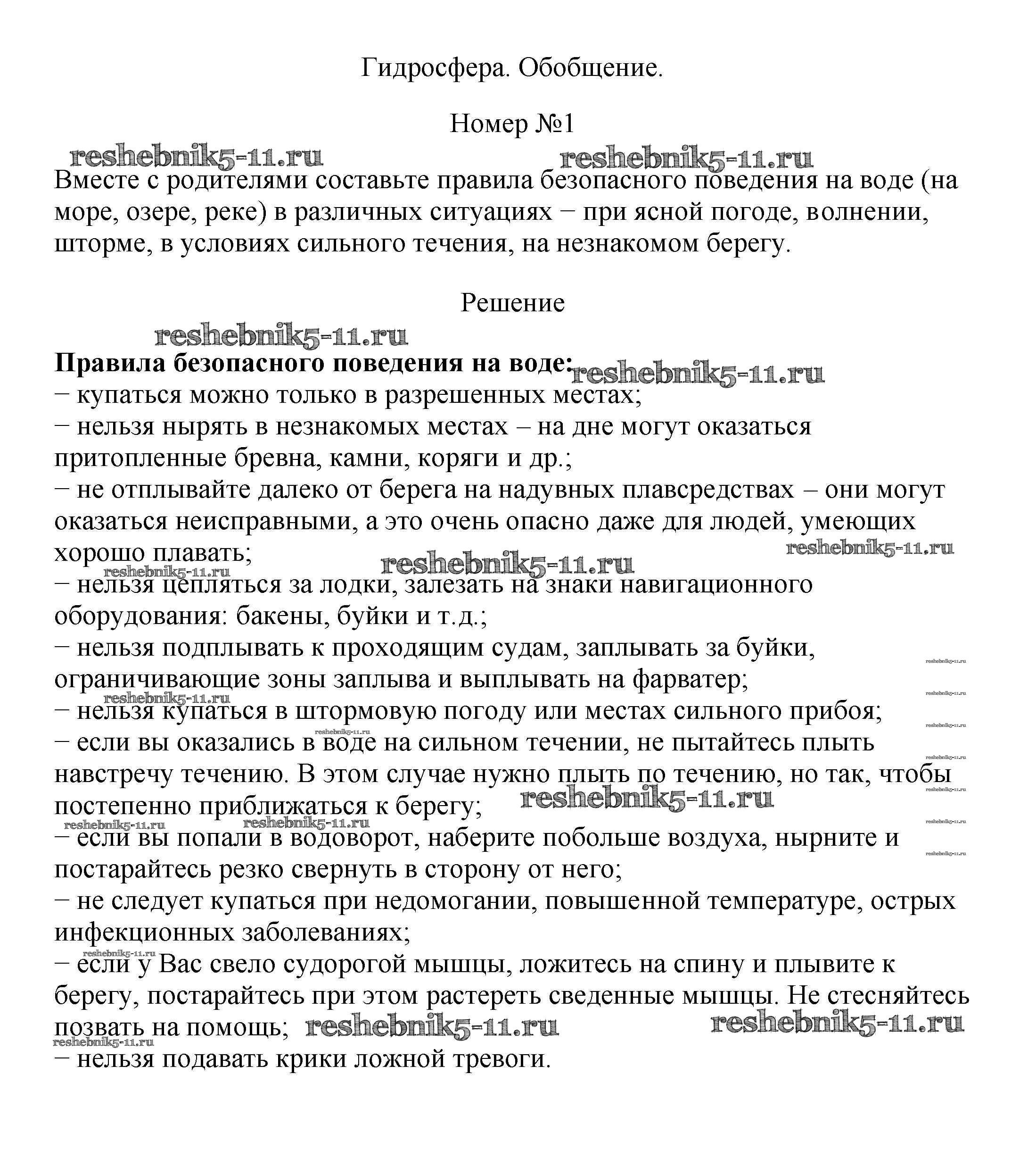 Решебник №1 / обобщение по теме "Гидросфера" / 1