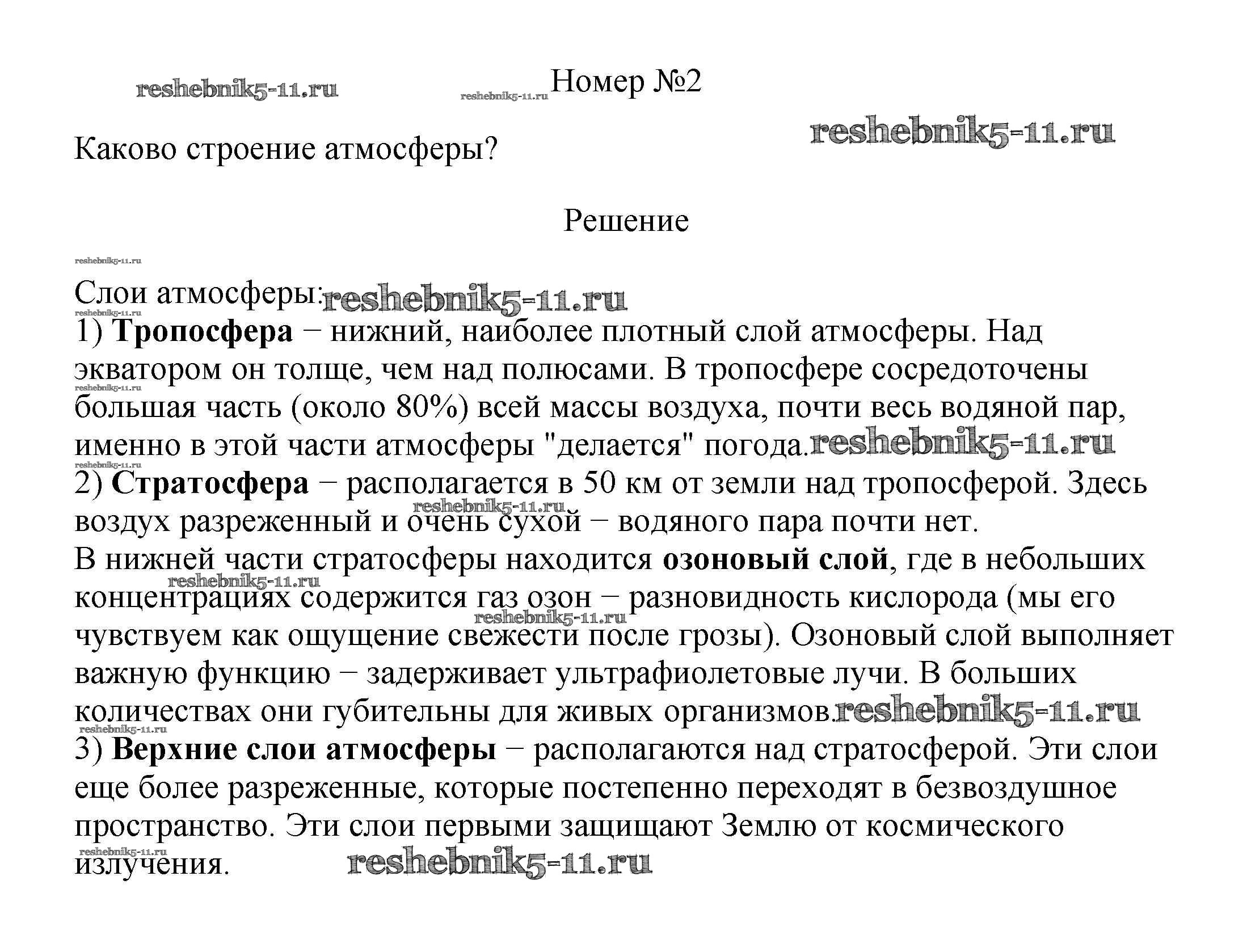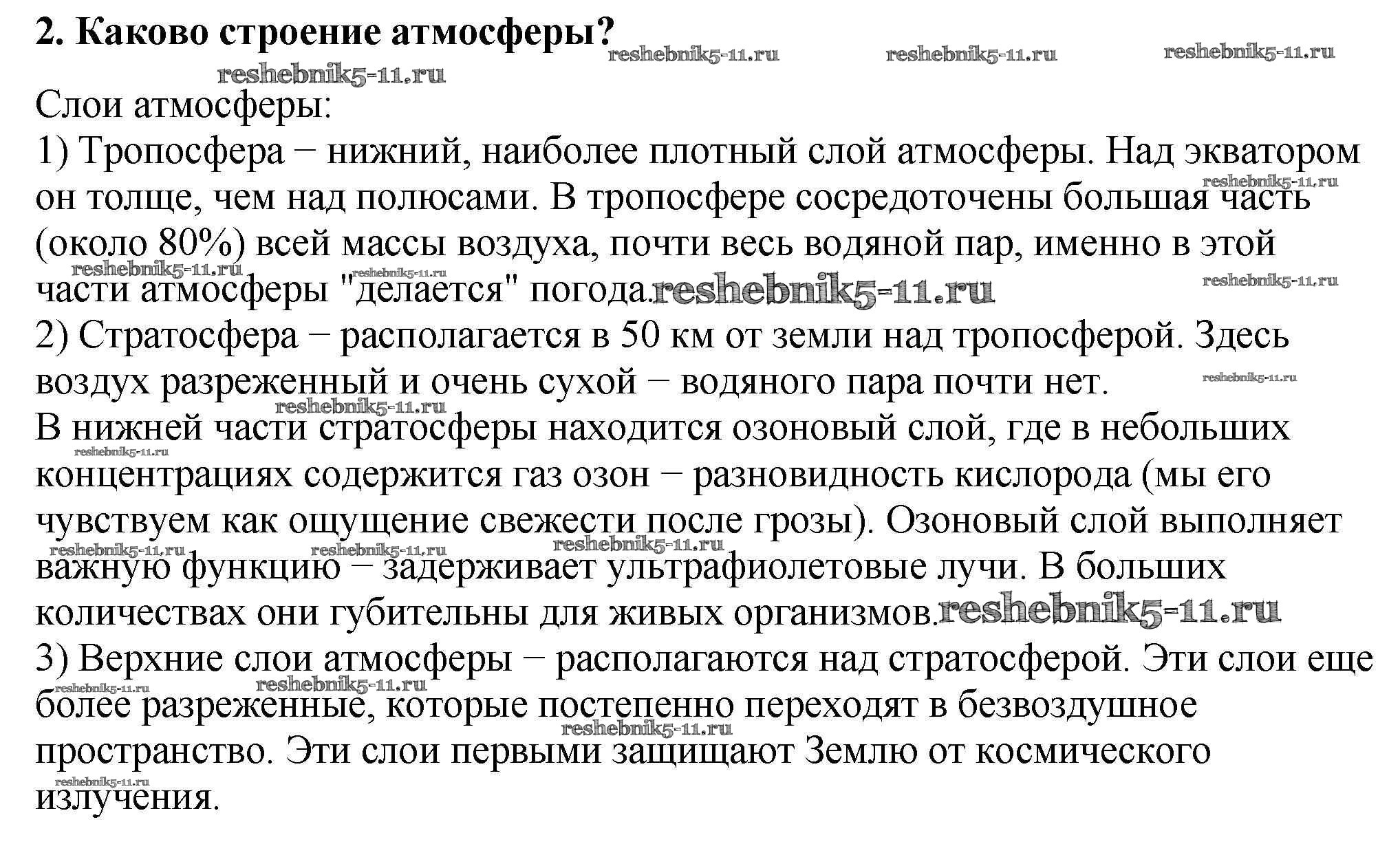 Готовая домашняя работа с ответами по Географии за 5, 6 класс Алексеев, Николина, Липкина Учебник Полярная звезда Просвещение 2018 ФГОС - §38. Состав и строение атмосферы 2