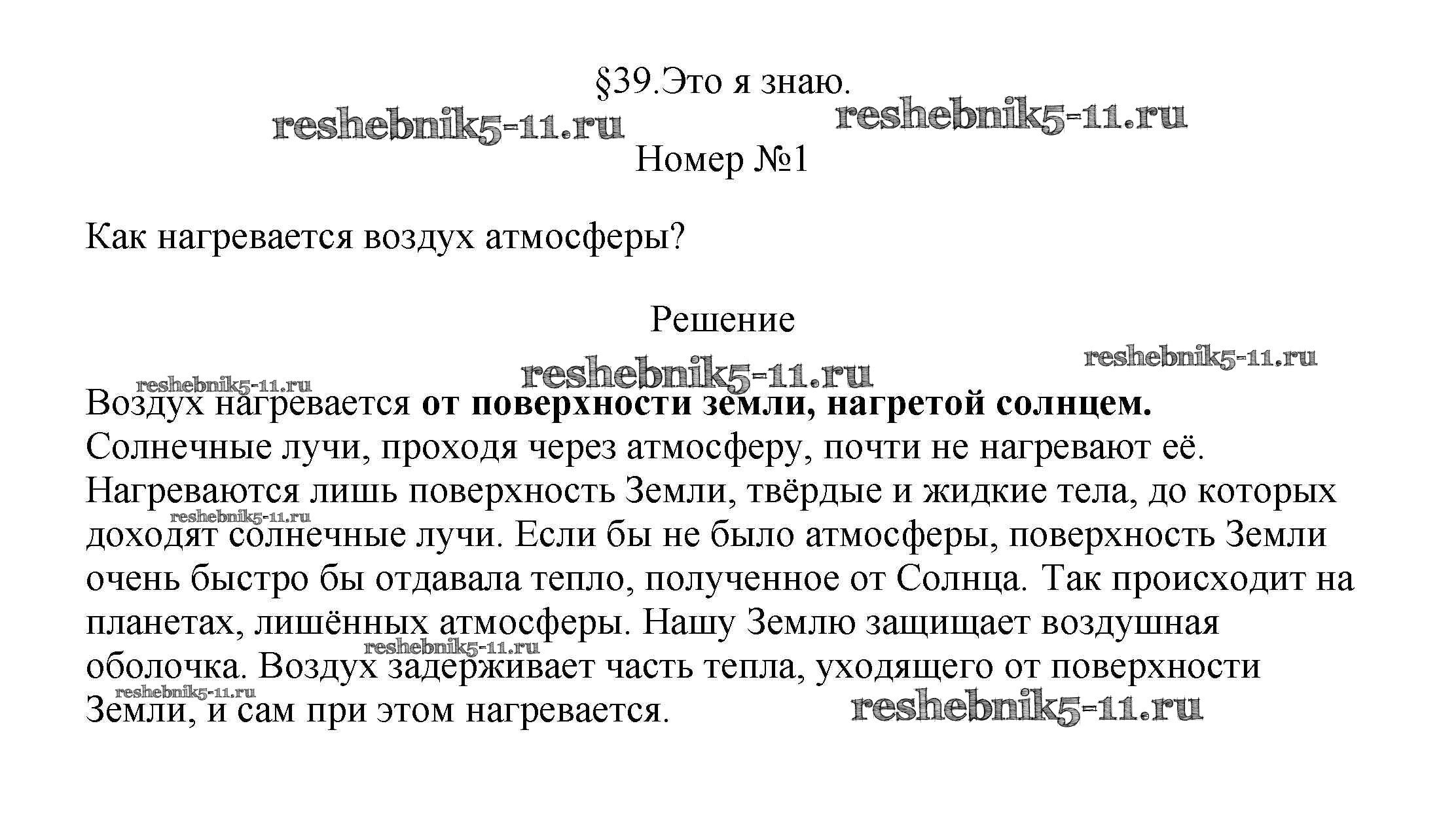 Готовая домашняя работа с ответами по Географии за 5, 6 класс Алексеев, Николина, Липкина Учебник Полярная звезда Просвещение 2018 ФГОС - §39. Тепло в атмосфере (1) 1