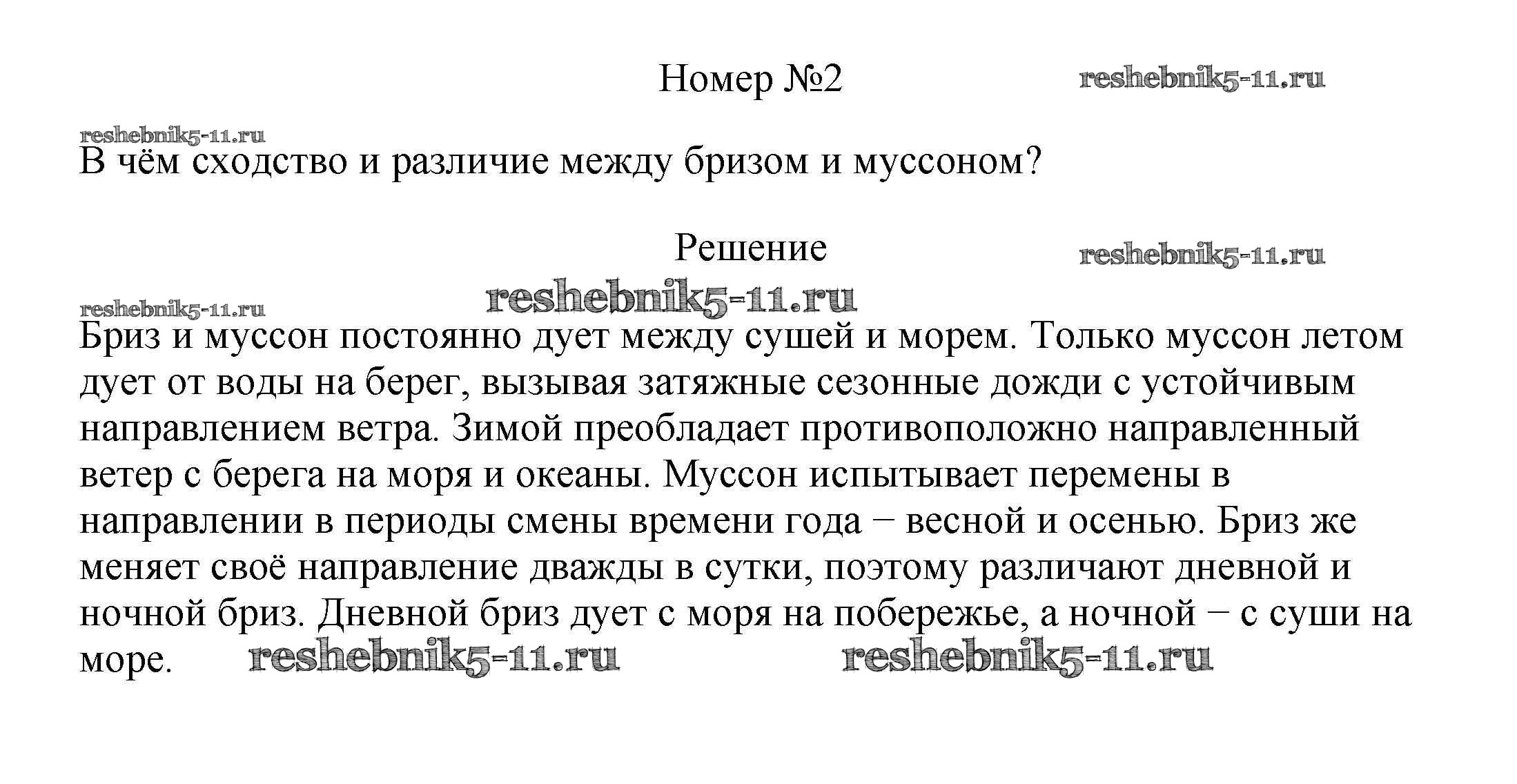 Готовая домашняя работа с ответами по Географии за 5, 6 класс Алексеев, Николина, Липкина Учебник Полярная звезда Просвещение 2018 ФГОС - §42. Ветер 2