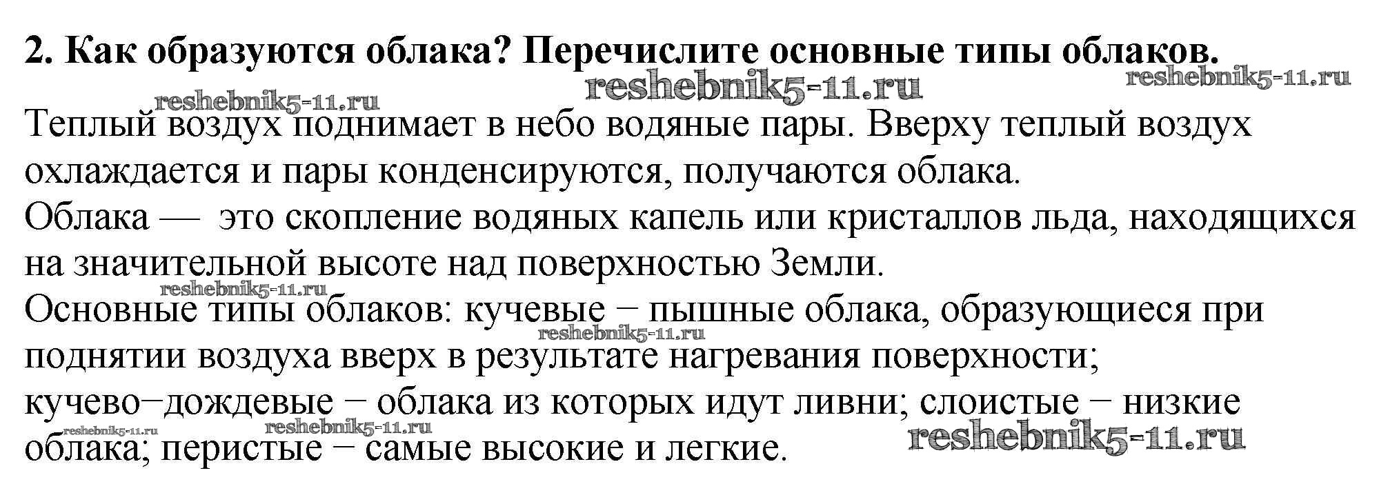 Готовая домашняя работа с ответами по Географии за 5, 6 класс Алексеев, Николина, Липкина Учебник Полярная звезда Просвещение 2018 ФГОС - §44. Влага в атмосфере (2) 2