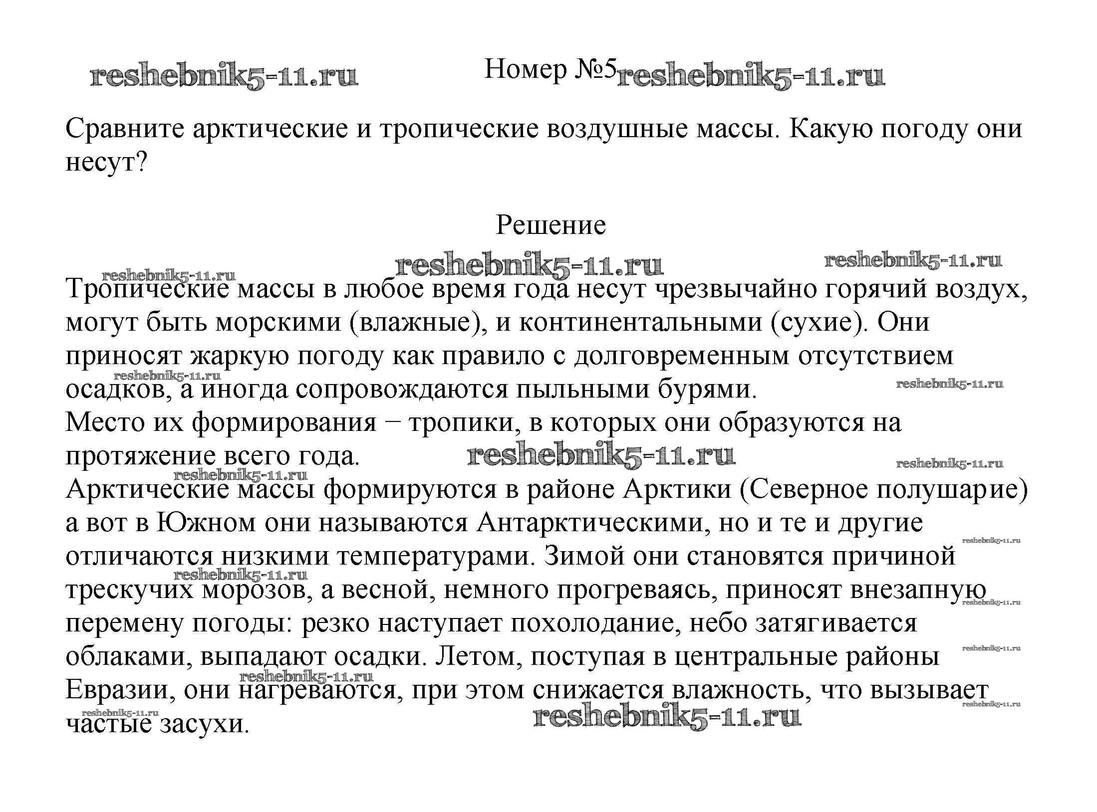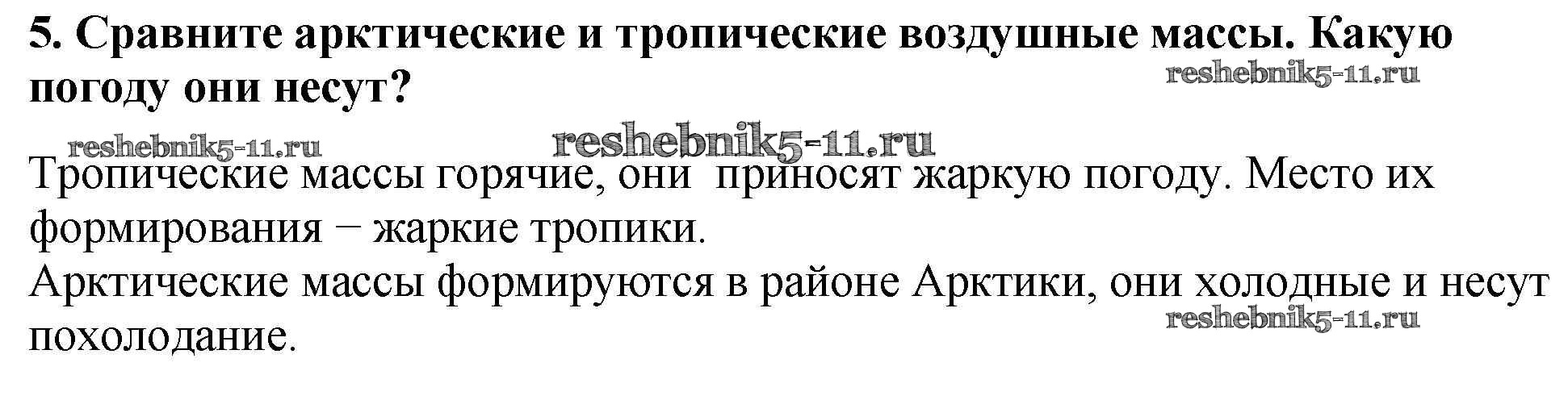 Готовая домашняя работа с ответами по Географии за 5, 6 класс Алексеев, Николина, Липкина Учебник Полярная звезда Просвещение 2018 ФГОС - §45. Погода и климат 5